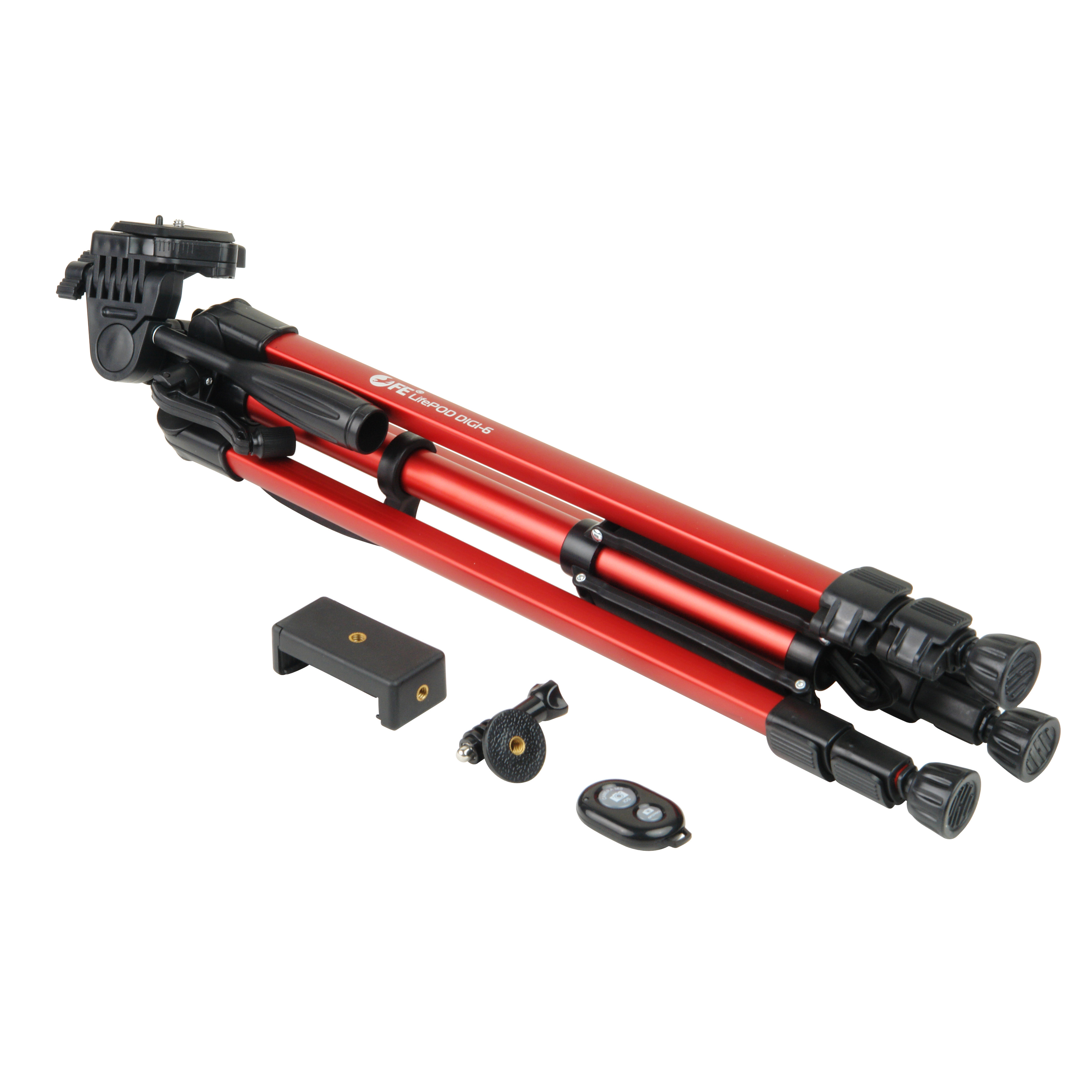 Штатив Falcon Eyes LifePOD DIGI-6 предназначен установки легкой цифровой фото- и видеокамеры весом до 4 кг, мобильного телефона шириной от 5.5 до 8.5 см или камеры GoPro (адаптеры и пульт BlueTouth в комплекте). Оригинальный дизайн и цвет «красный металлик» не оставит никого равнодушным. Подойдет для фотографов снимающих «на выезде», а также для часто путешествующих любителей фотографии – штатив очень легкий.