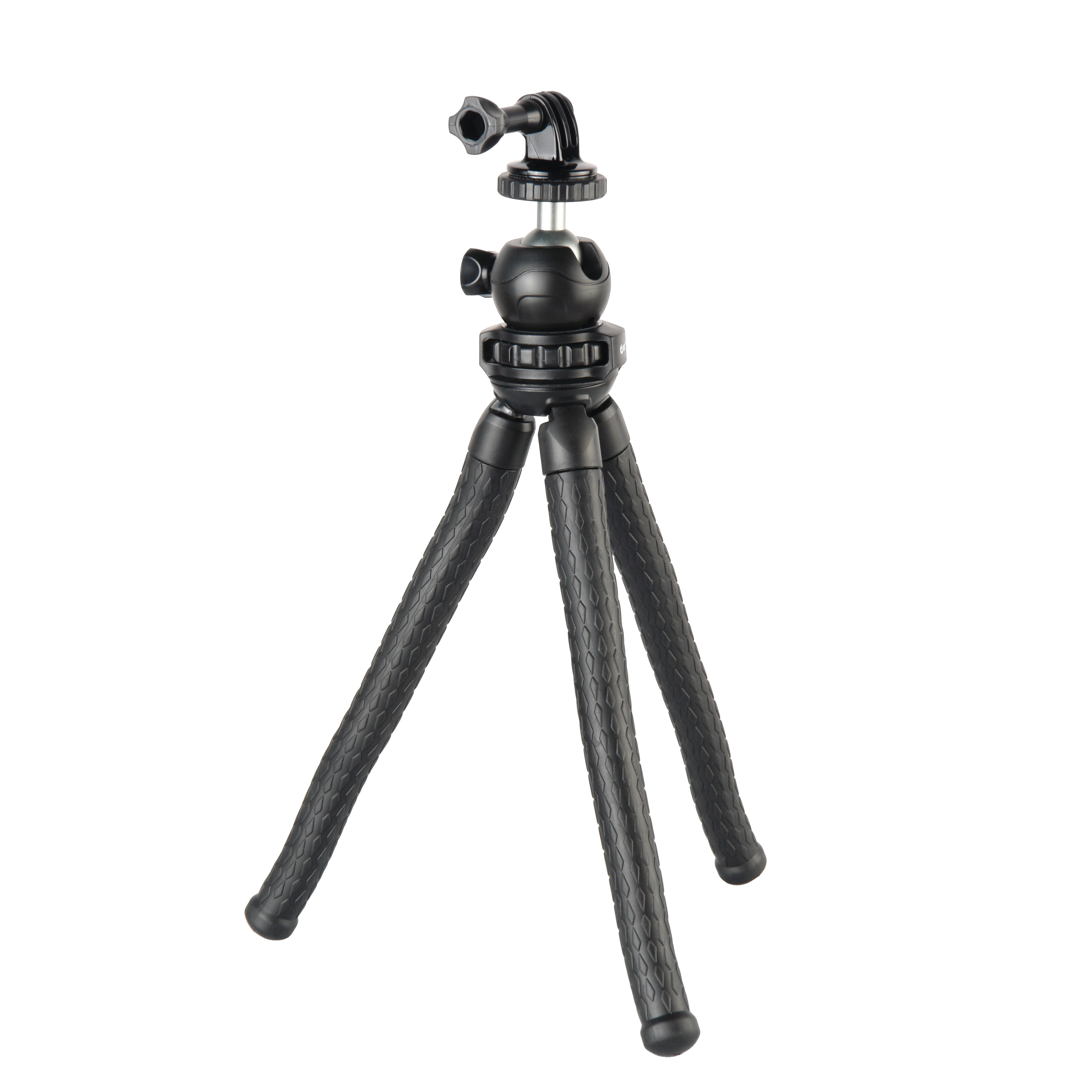 Ножки штатива сгибаются в любом направлении под любым углом и остаются в зафиксированном положении на длительное время. Благодаря особому материалу отсутствует эффект остаточного напряжения, работающего на выпрямление – главное не превышать допустимую нагрузку; на поверхности ножек не остается заломов и вы сможете использовать штатив долгие годы. Обрезиненная фактурная поверхность ножек не скользит и штатив (а значит камера) устойчиво закрепятся в нужном положении.