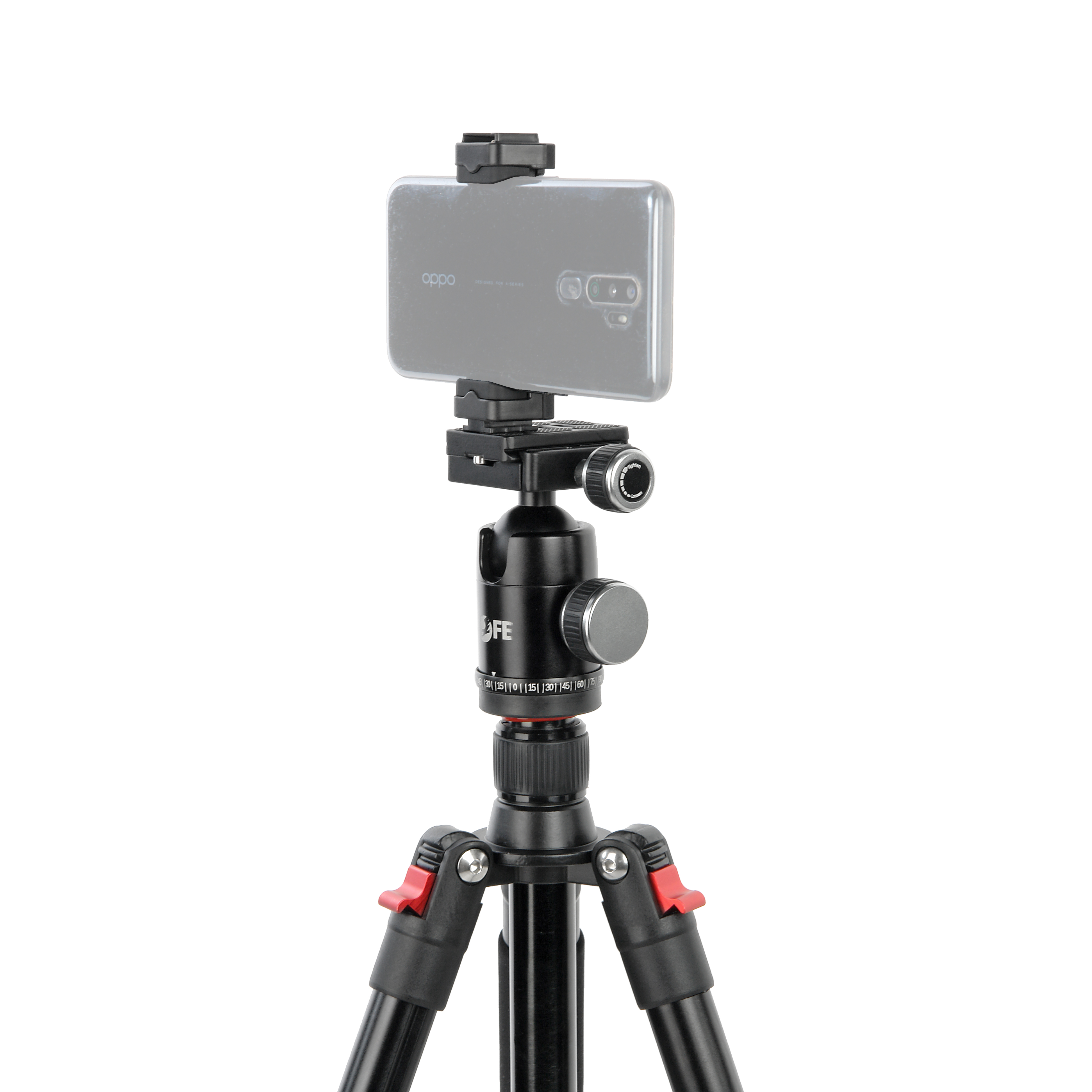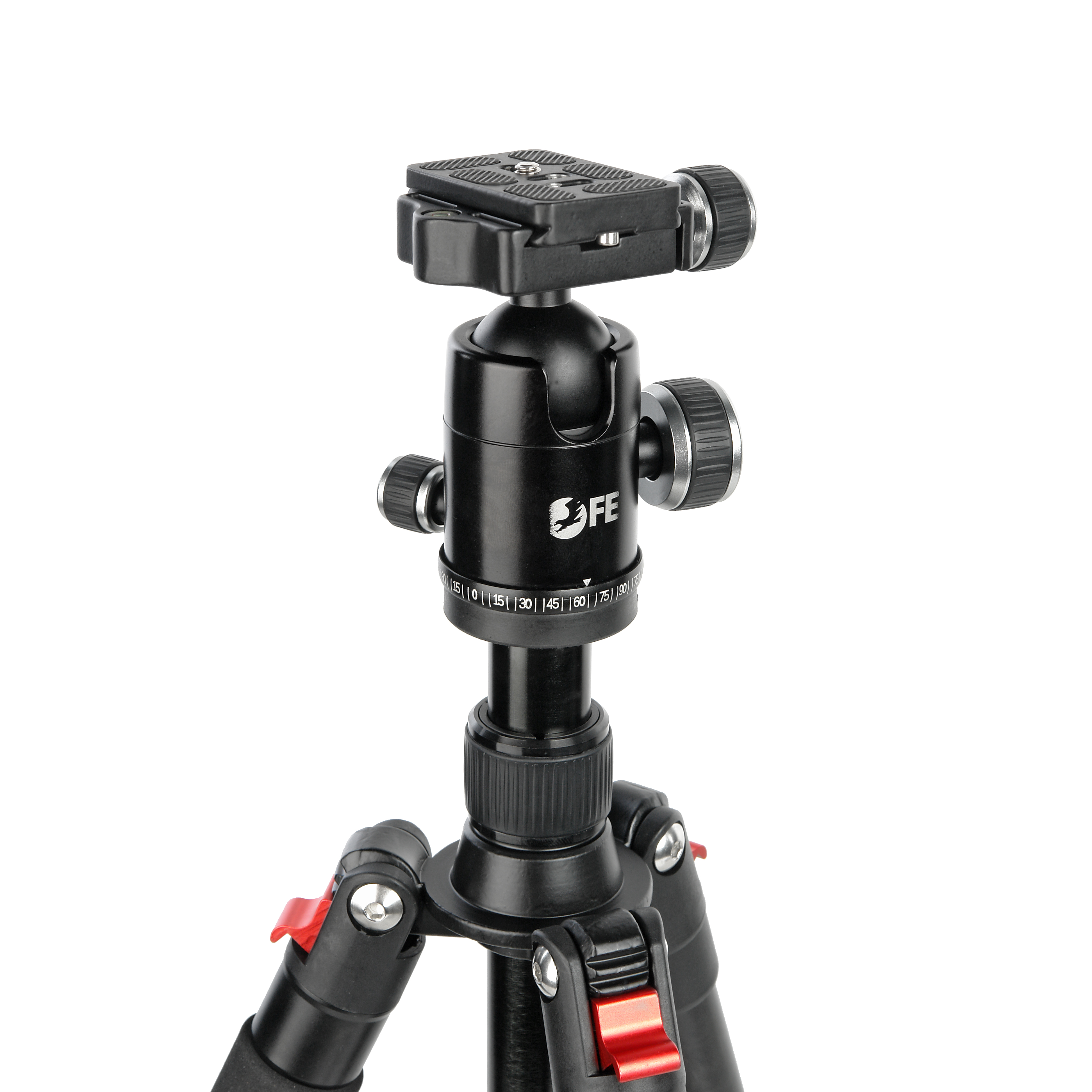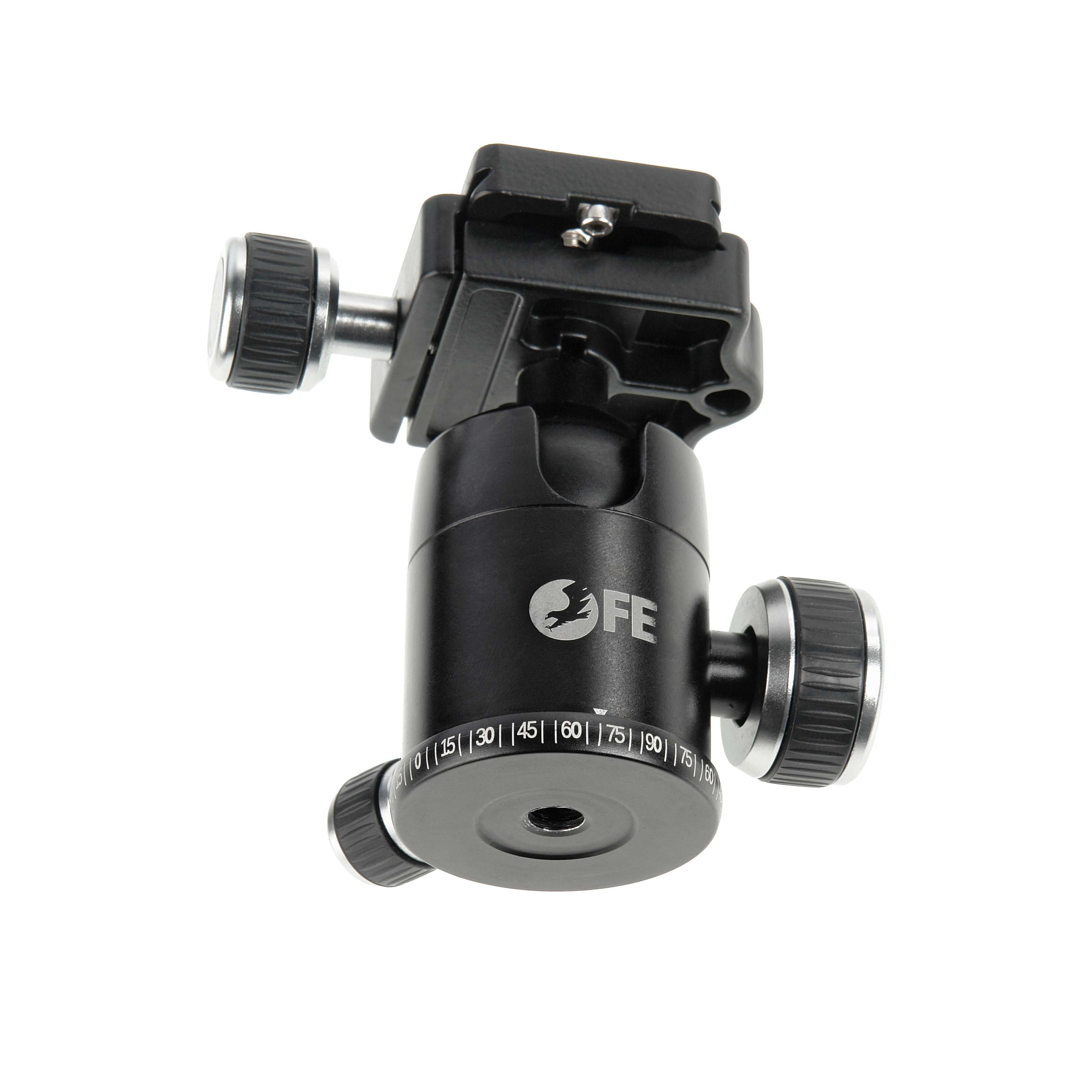 При отпущенном независимом фиксаторе, база штативной головки может свободно вращаться вокруг своей оси на 360° для проведения горизонтального панорамирования. Нанесенная шкала укажет положение начала и окончания движения.