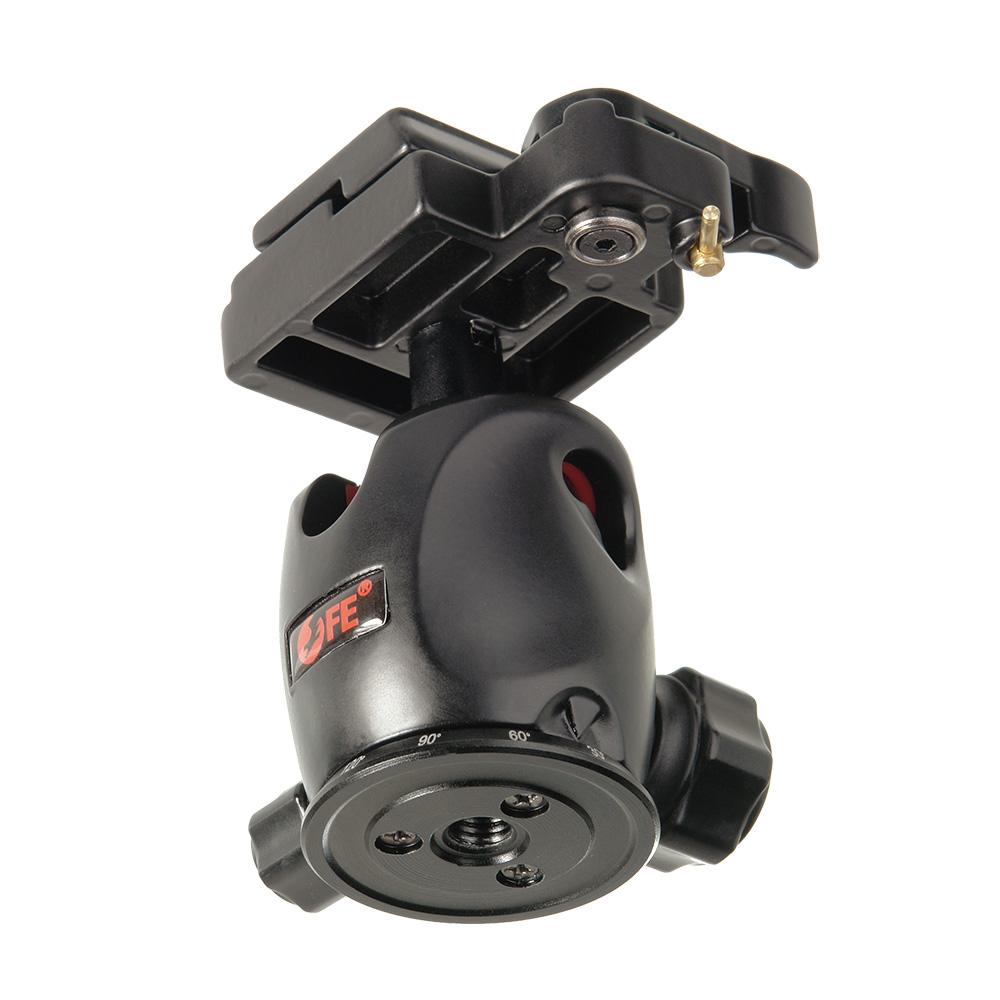 Шаровая голова из магниевого сплава с одним регулировочным винтом, позволит быстро подготовить штатив для съемки и надежно зафиксирует цифровую камеру в требуемом положении. Механизм разблокировки быстросъемной площадки оборудован предохранителем от случайного срабатывания. Паз в основании головы обеспечивает оперативный вертикальный поворот камеры.