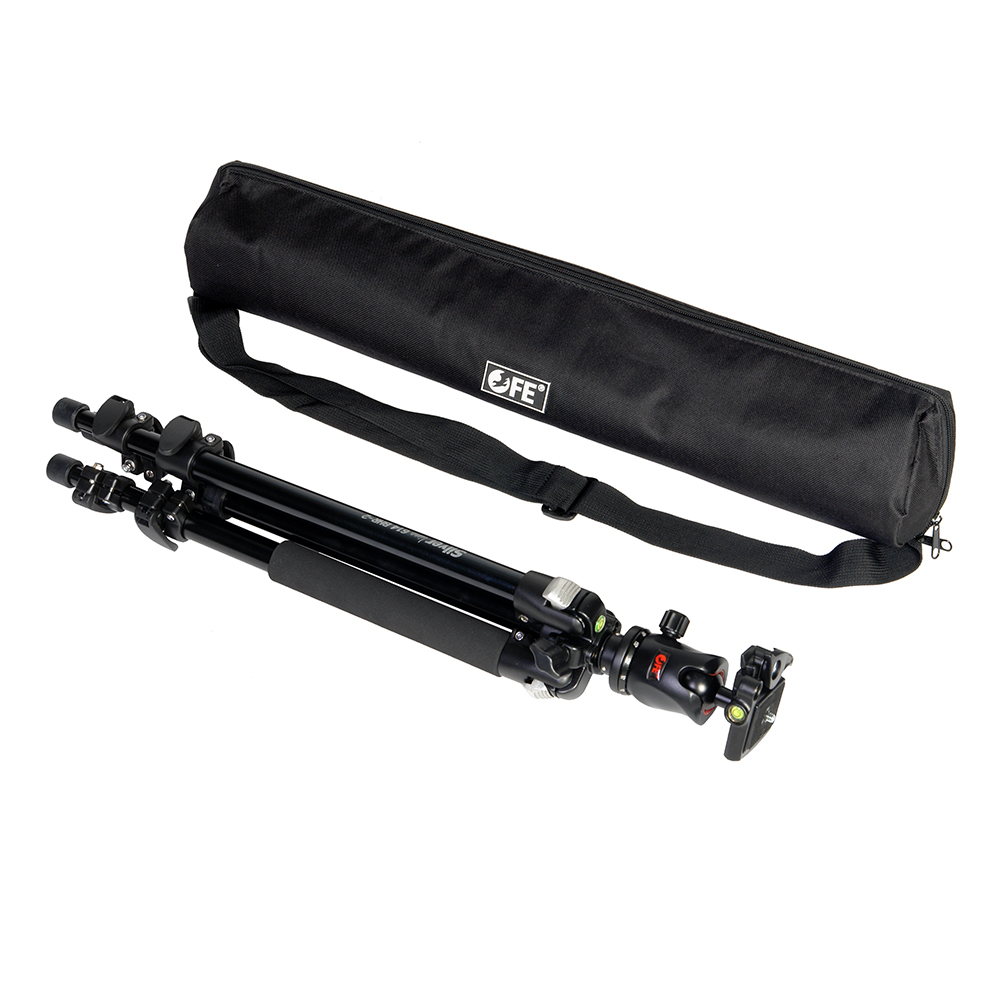 Литое основание из магниевого сплава поглощает вибрации и обеспечивает устойчивость. В основании встроен пузырьковый уровень. 3 секции ноги соединяются между собой клипсовыми зажимами с регулировкой усилия. Угол наклона каждой ноги фиксируется независимо в трех положениях, для этой цели предусмотрены специальные защелки, это дает возможность использовать в качестве опоры ступени, камни и другие сложные поверхности, а также проводить съемку с нижней точки. Резиновые наконечники на ногах придают штативу дополнительную устойчивость на различных поверхностях.