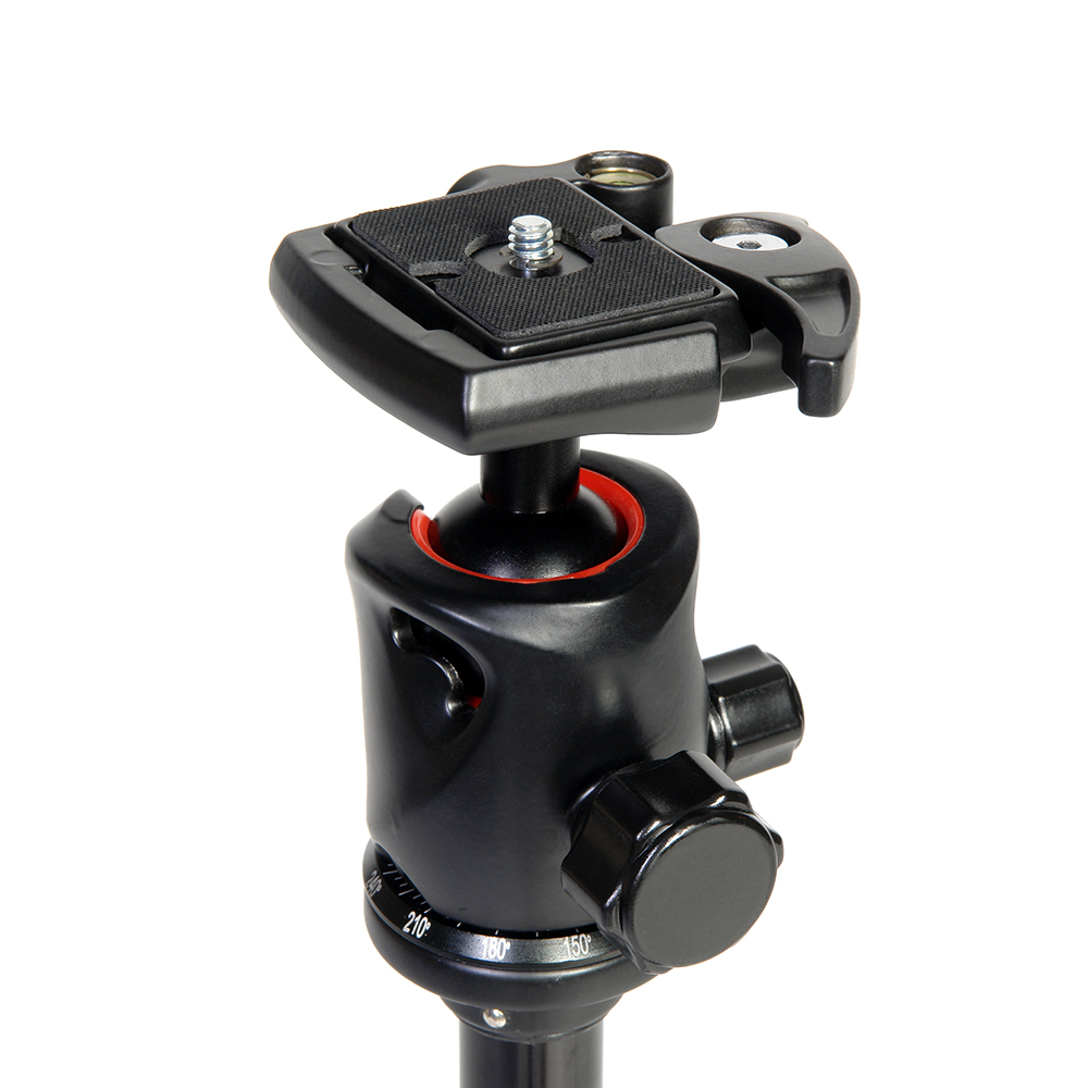 Шаровая голова из магниевого сплава с одним регулировочным винтом, позволит быстро подготовить штатив для съемки и надежно зафиксирует цифровую камеру в требуемом положении. Механизм разблокировки быстросъемной площадки оборудован предохранителем от случайного срабатывания. Паз в основании головы обеспечивает оперативный вертикальный поворот камеры.