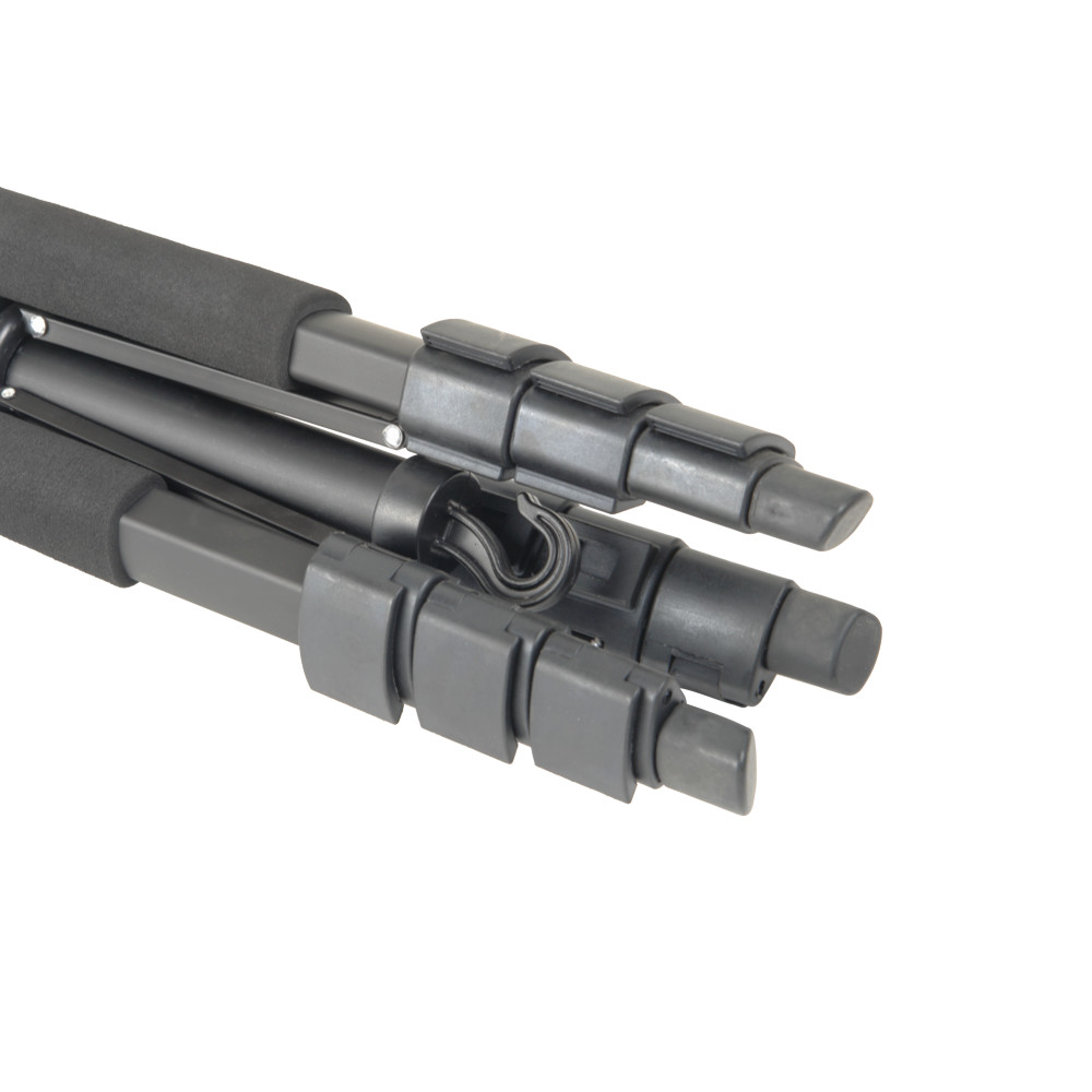 Четыре секции ножек штатива изготовлены из алюминиевого профиля с анодированным покрытием, которое обеспечивает сопротивление коррозии. Секции ног надежно фиксируются клипсовыми замками из ABS пластика.