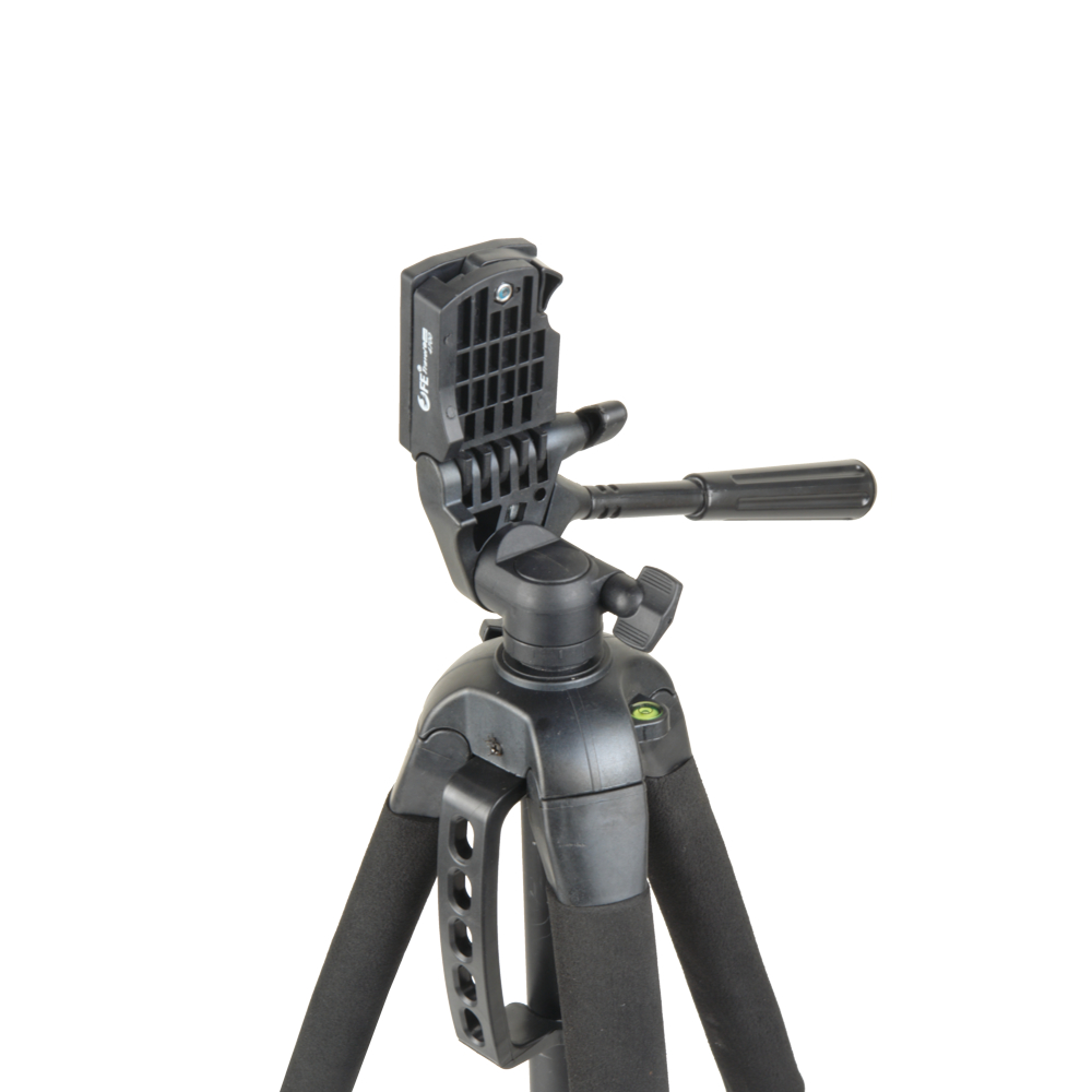 В основании головки расположен винтовой фиксатор горизонтального панорамирования и винтовой фиксатор угла наклона. Также для фиксации камеры и быстрого наведения «на цель» предусмотрена ручка штатива длиной 15 см.