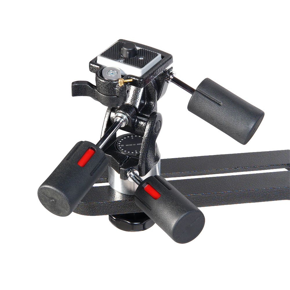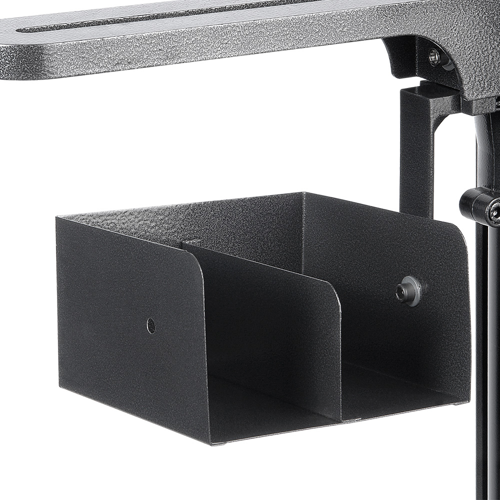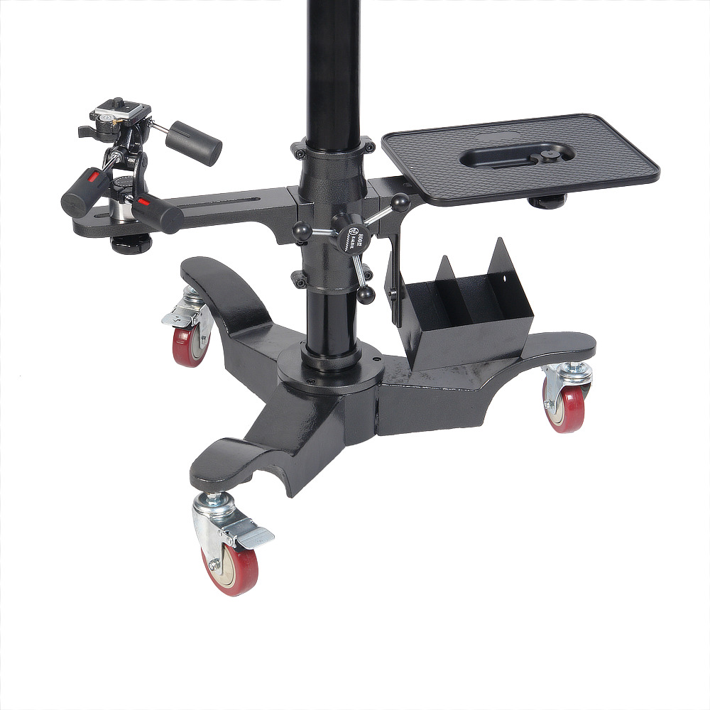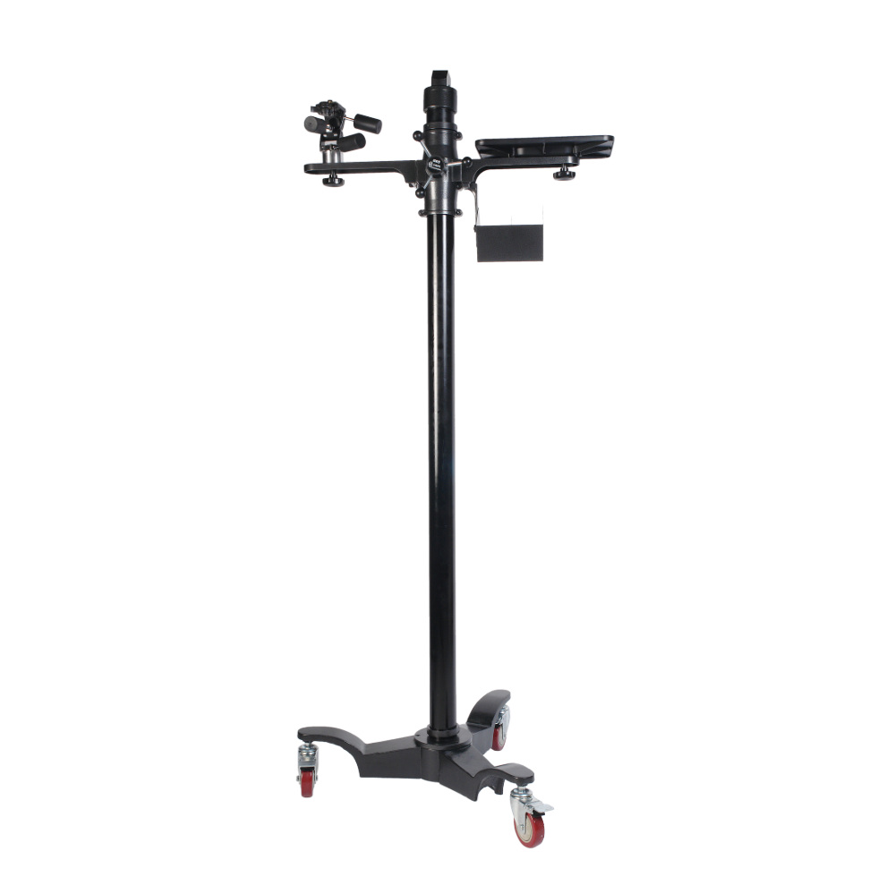 На горизонтальные штанги-консоли монтируются металлический столик (25,5 х 35,5 см) и поворотно-наклонная головка для установки необходимого оборудования. Максимальный ход головки по штанге составляет 236 мм.