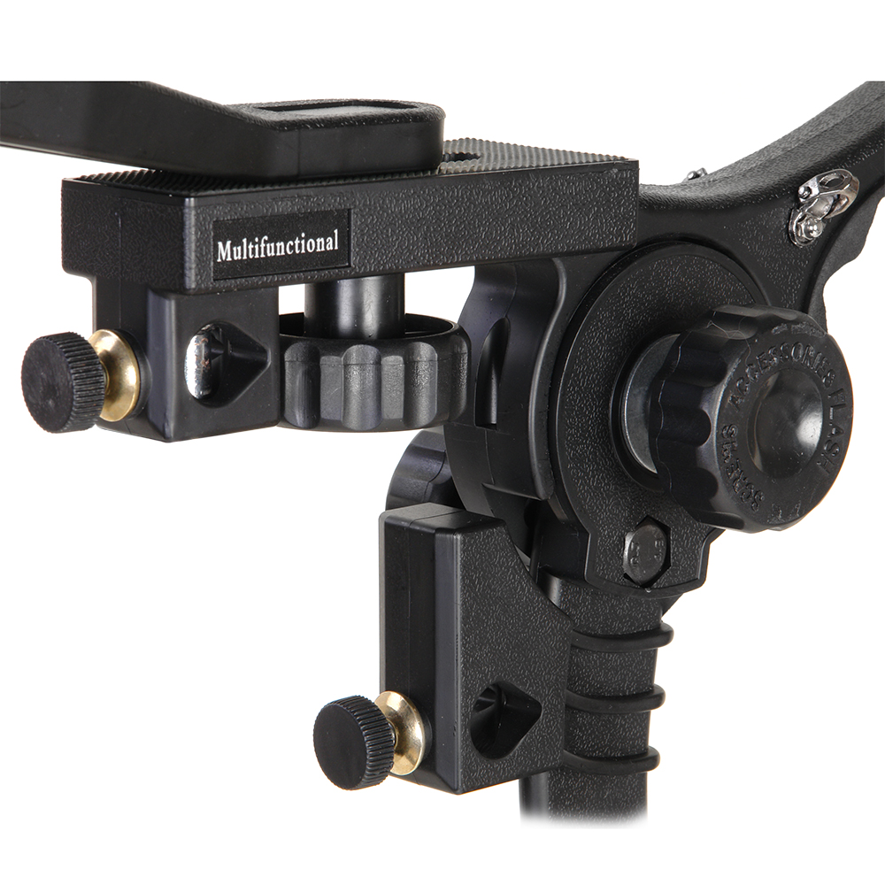 В штативе имеются два посадочных места для установки конструкции на стойку с наконечником 5/8 дюйма (с зажимными винтами и бронзовыми вставками). В комплекте — широкий, мягкий ремень с пластиковым карабином.