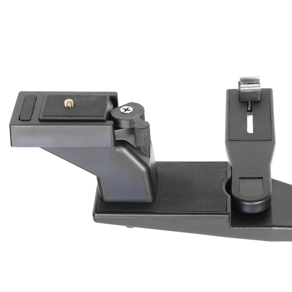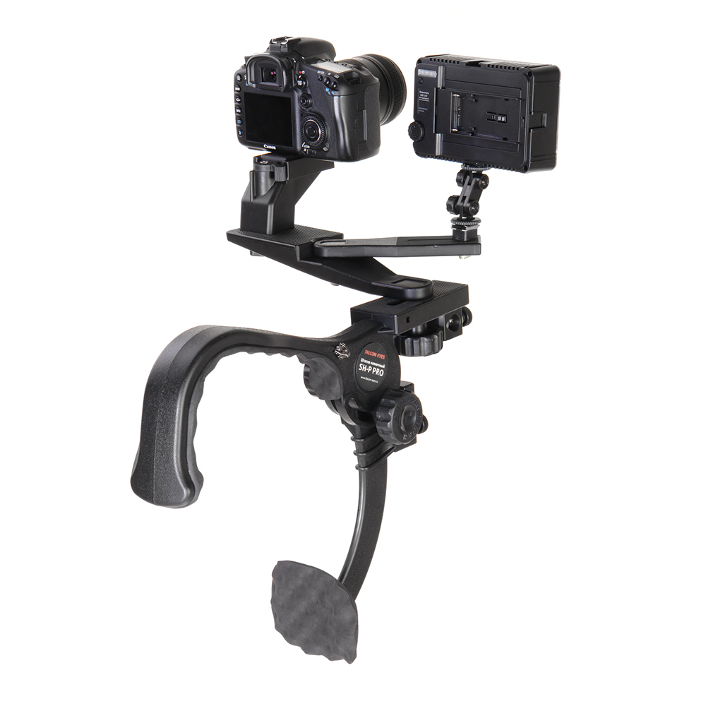 Легкий, компактный (в сложенном положении) наплечный штатив для фото и видеосъемки. Благодаря использованию жесткого и прочного инженерного пластика, металлических осей, в статике он выдерживает нагрузку до 5 кг. Однако, с учетом рывков и толчков, возникающих при съемке в движении, его не рекомендуется использовать с аппаратурой весом более 1,5 кг.