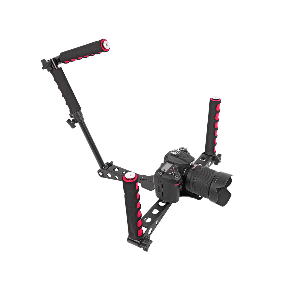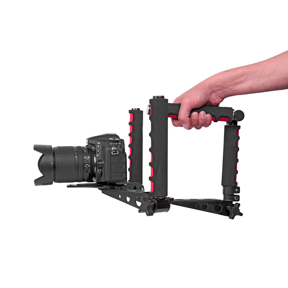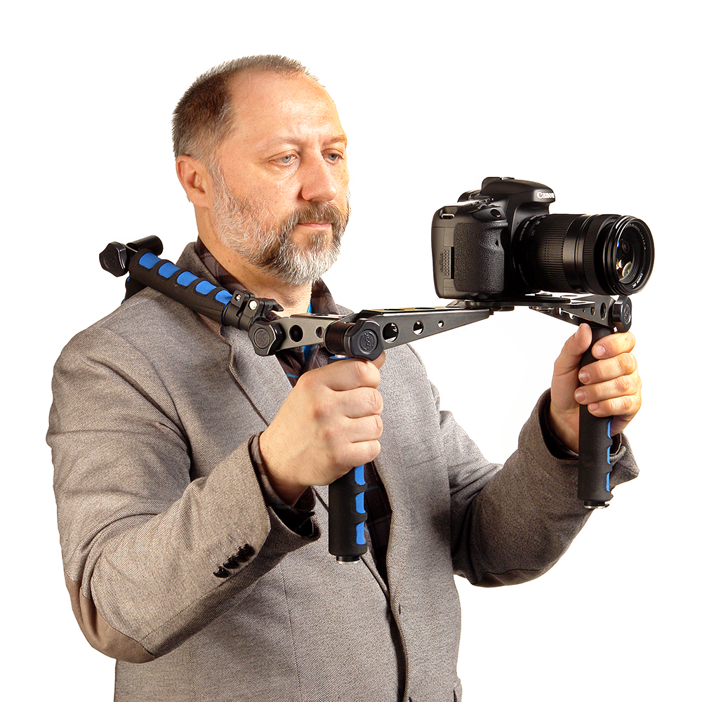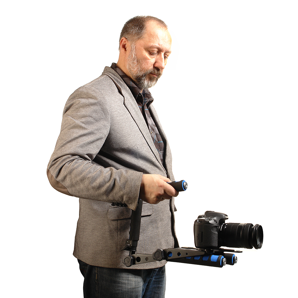 При использовании в качестве наплечного штатива max расстояние между ручками составляет 400 мм (регулируется), длина ручек 210 мм.