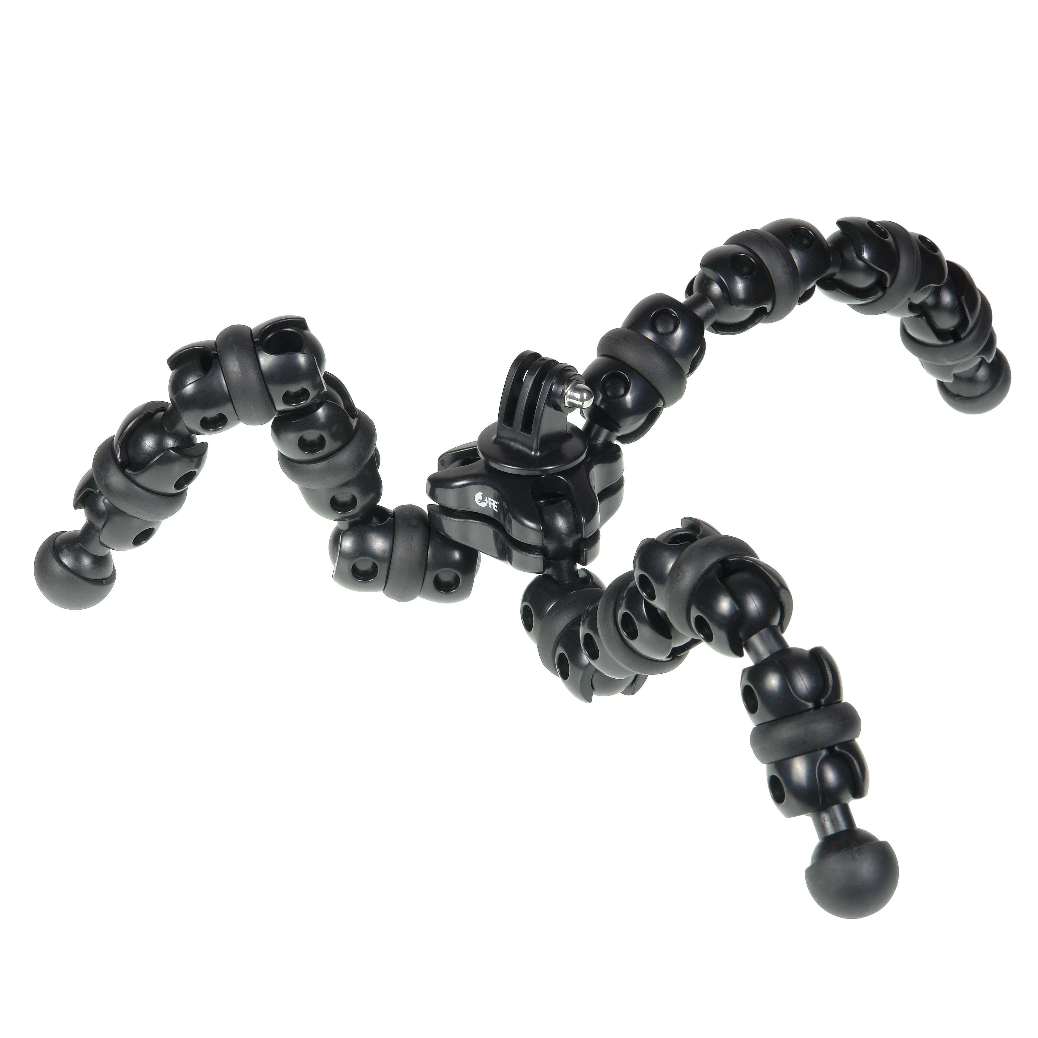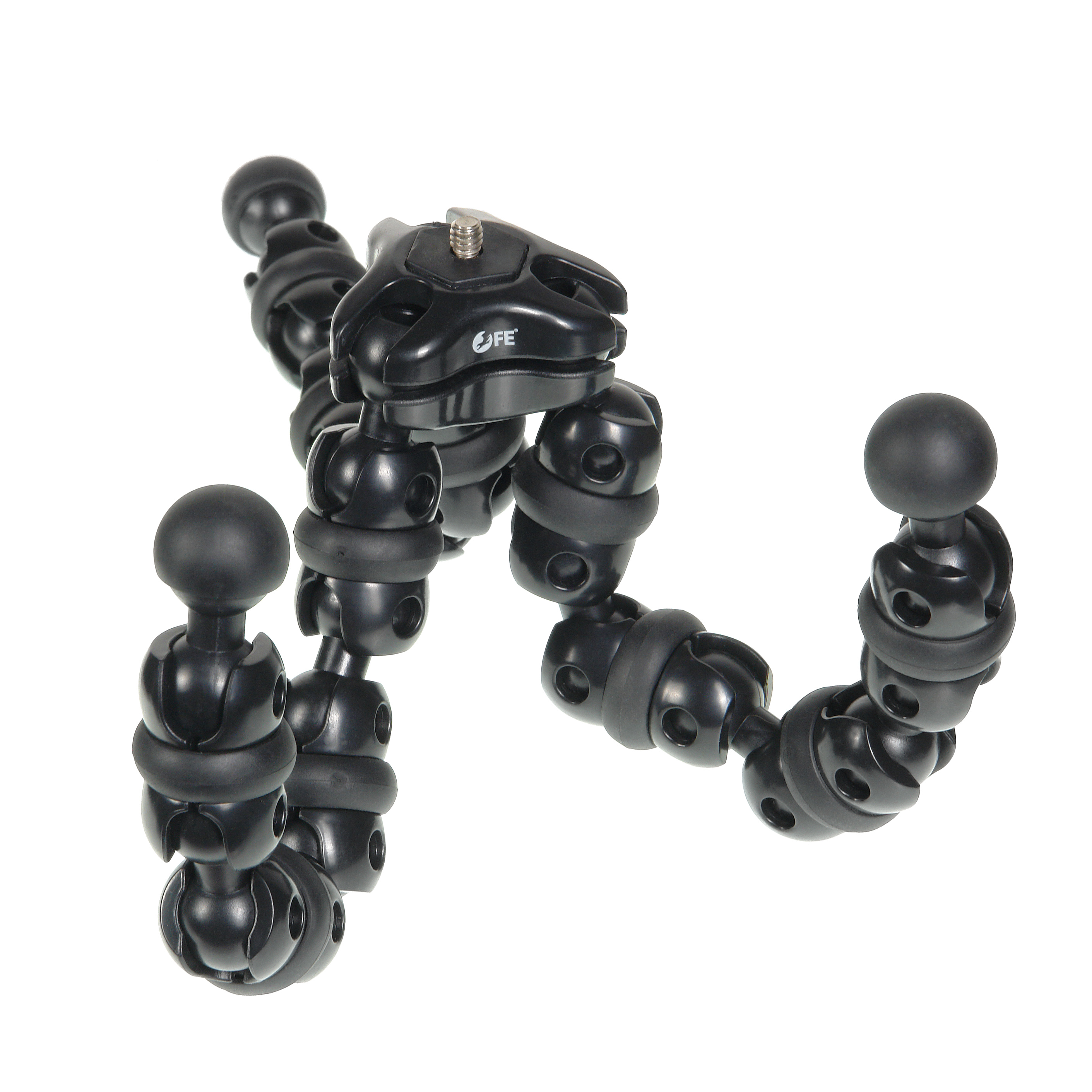 Ножки штатива представляют собой 4 секции гибких шарнирных соединений, которые сгибаются в любом направлении под любым углом и сохраняют свое положение, надежно фиксируя съемочное оборудование. Резиновые опоры и кольца, расположенные на каждом шарнире, предохраняют соприкасающуюся поверхность от повреждения. Гибкость ножек сохраняется даже при многократном использовании.