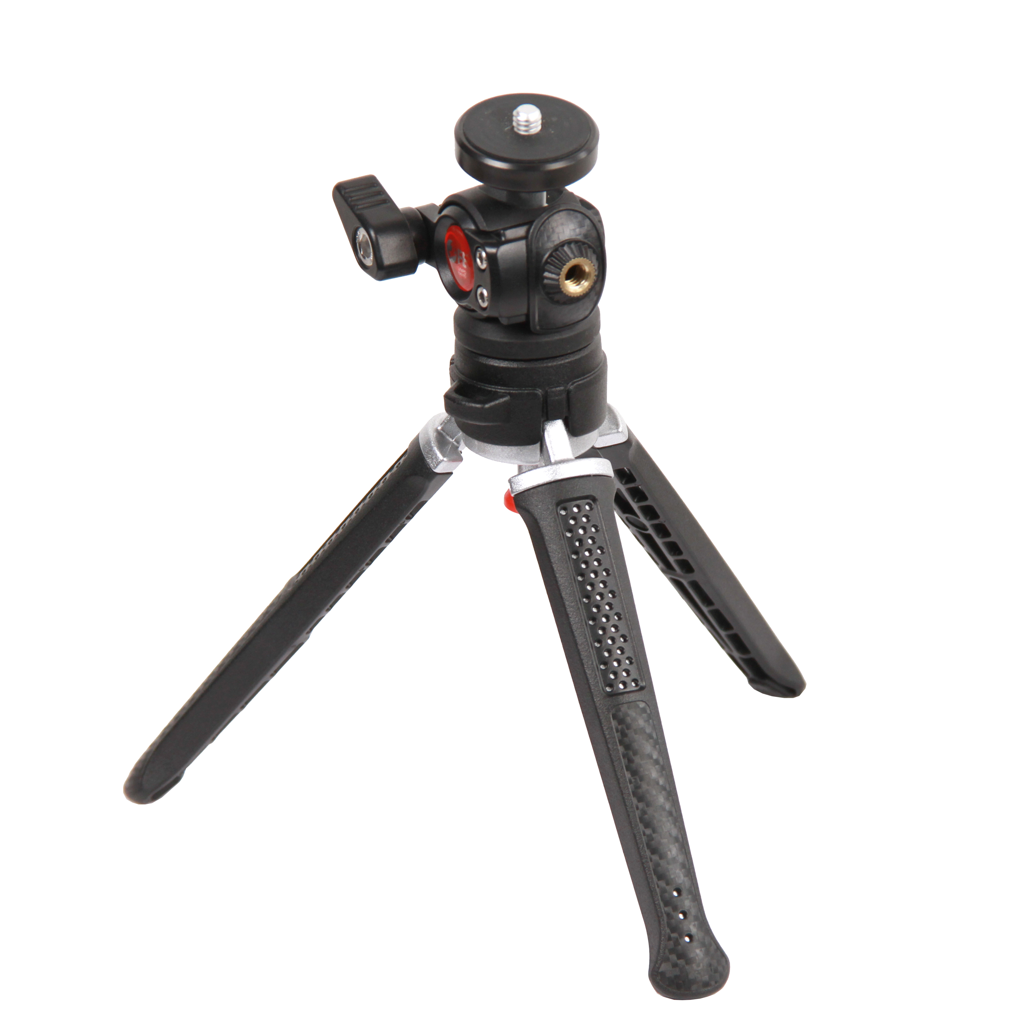 Настольный штатив может устанавливается на высоту 12.5 см или 5 см с фиксацией для выбора точки съемки. Треногу можно использовать, как монопод для съемки с рук. В сложенном виде его длина 15 см, а ножки приобретают форму рукоятки для удержания в руке.
