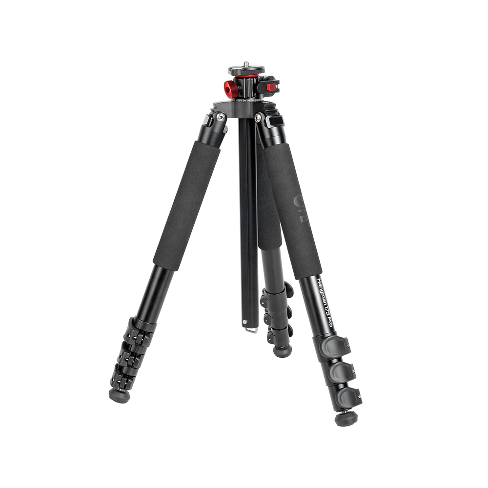 Четыре секции ножек штатива изготовлены из алюминиевого сплава. Анодированное покрытие обеспечивает сопротивление ржавчине, а большой диаметр секций позволяет уменьшить вибрацию. Диаметр ножек штатива — 33, 28, 25 и 22 мм. Секции ног надежно фиксируются клипсовыми замками из ABS пластика. При ослаблении клипсового фиксатора — возможна регулировка зажима винтом.