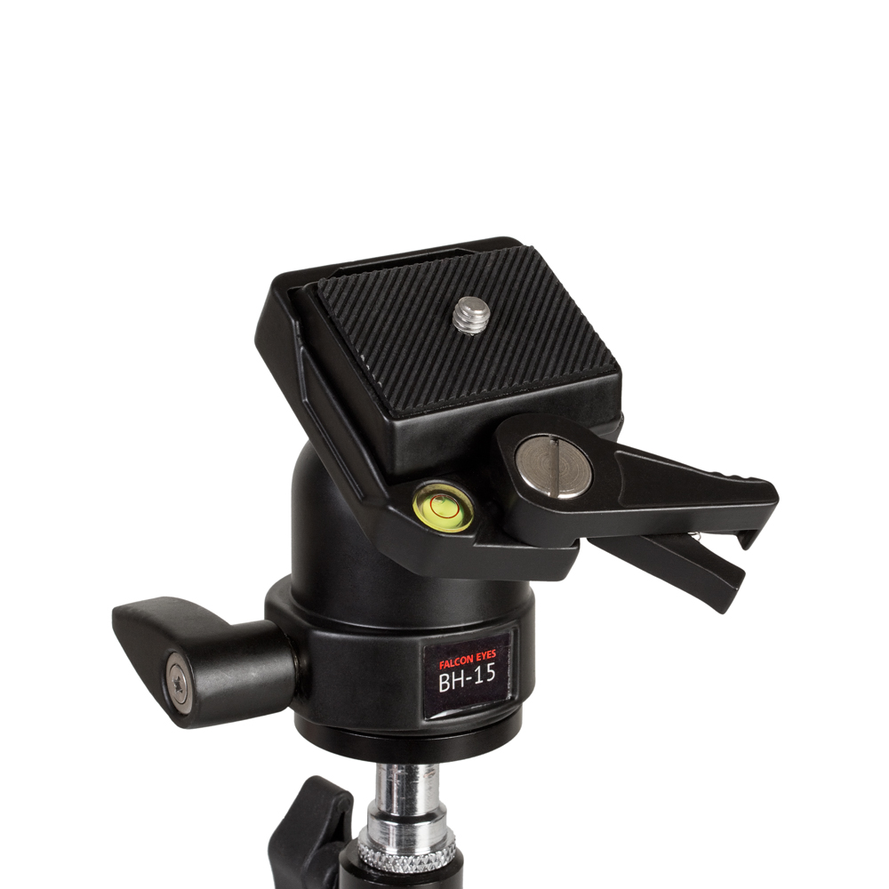 Falcon Eyes ВН-15 — шаровая штативная голова, представляет собой конструкцию из алюминиево-магниевого сплава со стальным полированным шаром и быстросъемной площадкой, предназначена для установки камер весом до 5 кг.