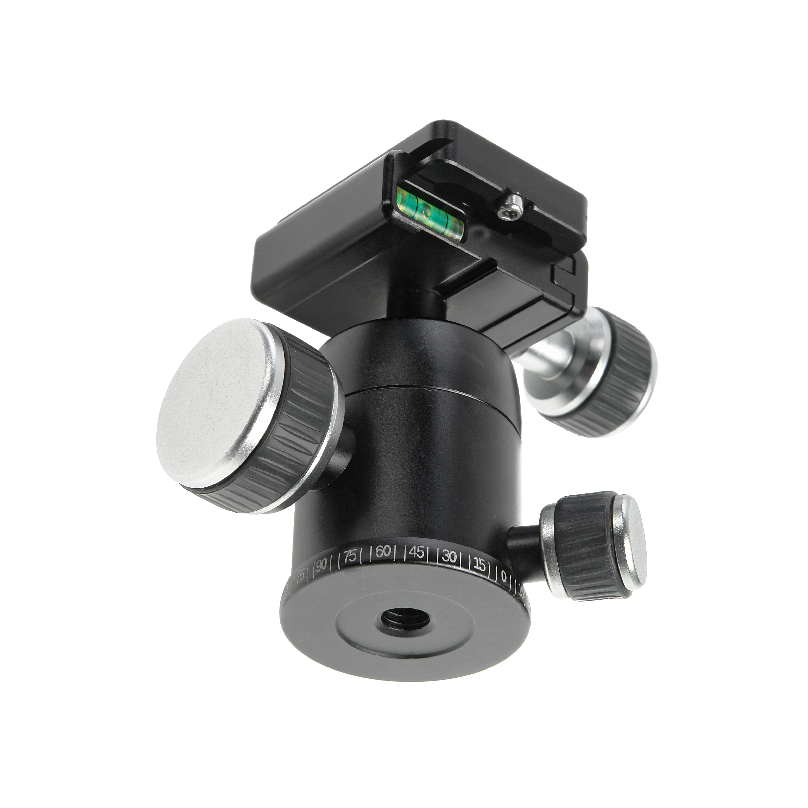BH-25 имеет систему быстросъемной площадки — это дает возможность быстро снять и поставить камеру на штативную голову. Площадка оборудована установочным винтом диаметром 1/4" и предохранителем, который убережет камеру от возможного выскальзывания. В базе под быстросъемную площадку расположен пузырьковый уровень и фиксатор площадки.