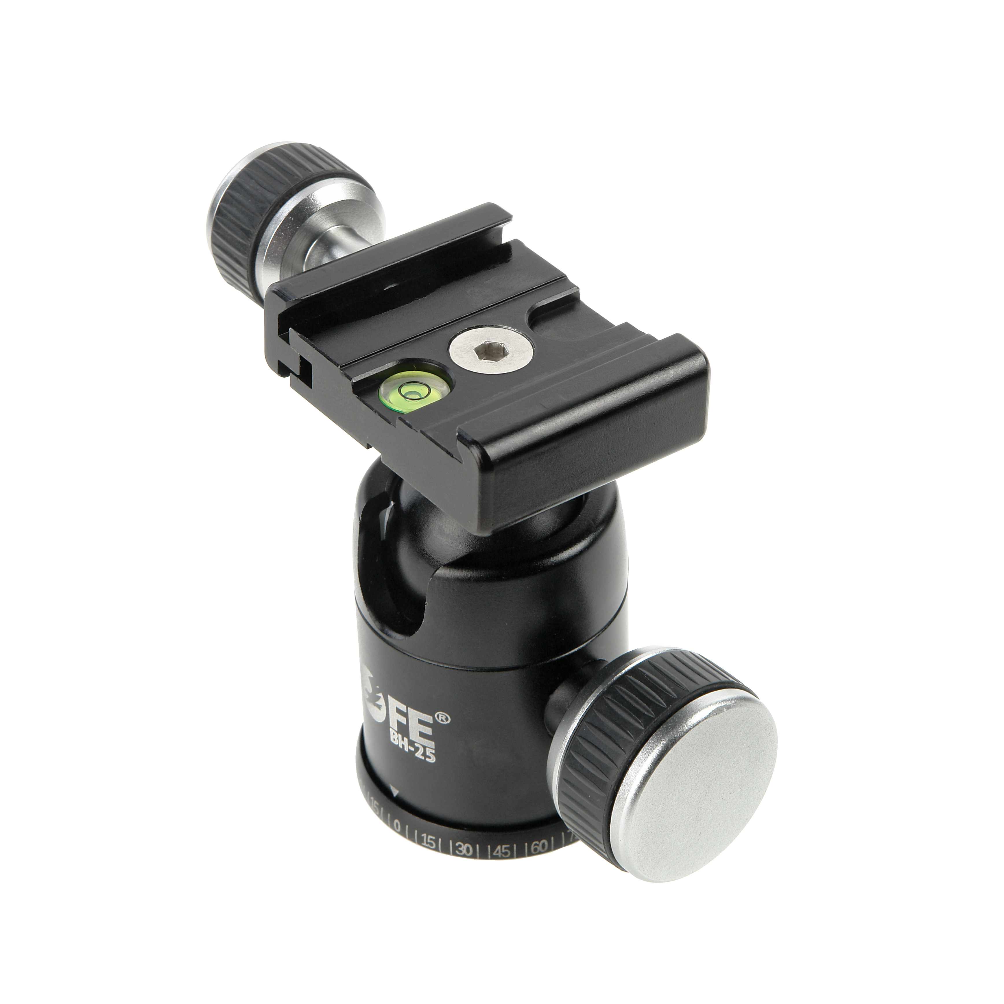 При небольшом собственном весе — всего 295 г, обладает высокой прочностью, прецизионным исполнением и выдерживает нагрузку до 10 кг. Голову BH-25 можно использовать с любыми штативами, моноподами или другими опорами, имеющими установочный винт диаметром 3/8". Нижняя база головки снабжена поворотным механизмом с независимым фиксатором положения и шкалой для горизонтального панорамирования. Также на базе расположен фиксатора шара, который управляет всеми положениями головки. Вращение рукояток плавное с дозированным усилием, а фиксация быстрая и надежная. Установив усилие зажима на близком к максимальному уровню, вращение шара происходит плавно и без «рывков».