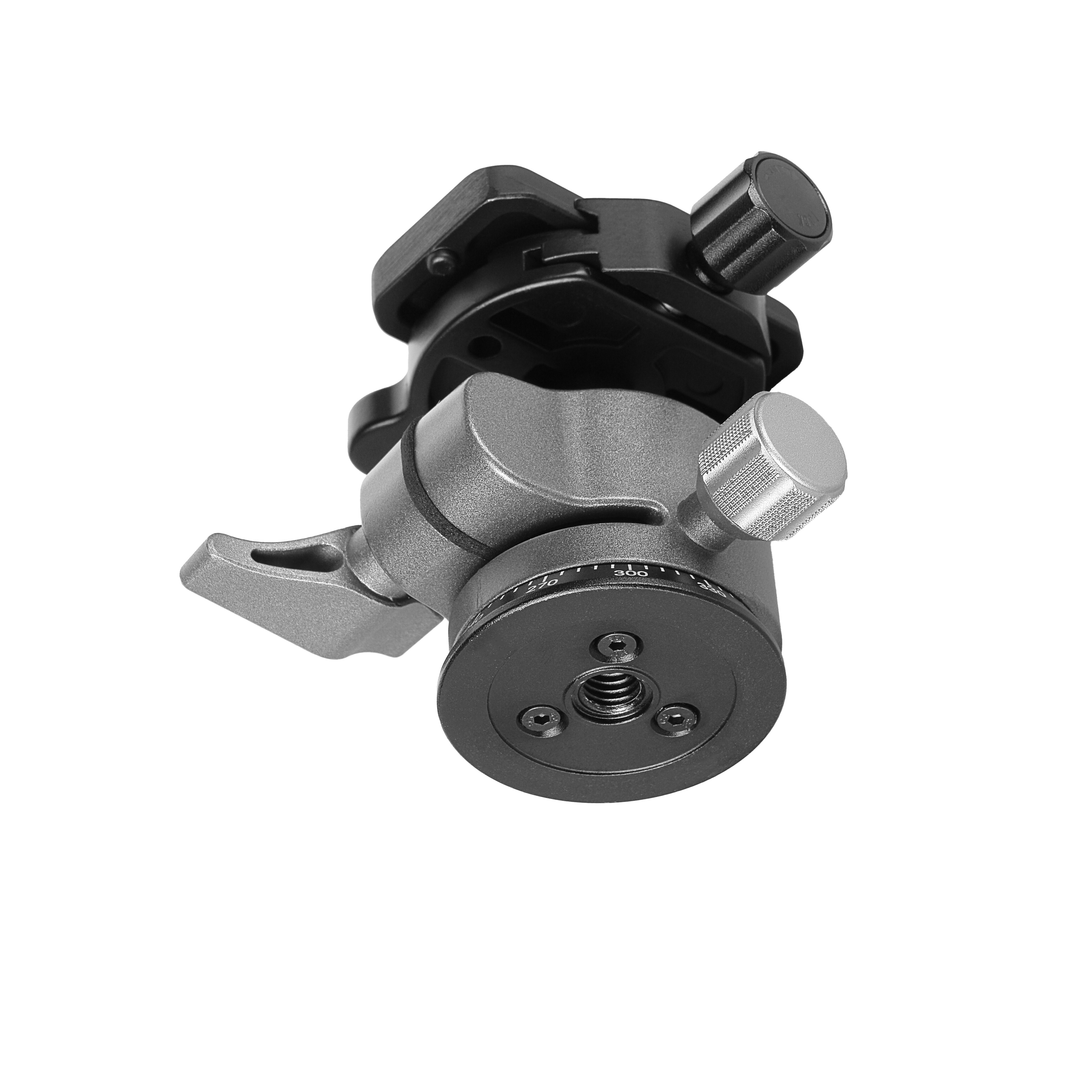 Головка дает возможность горизонтального панорамирования на 360°. На поворотном диске в основании конструкции предусмотрена шкала с шагом 6°. Положение головки относительно шкалы фиксируется винтом.