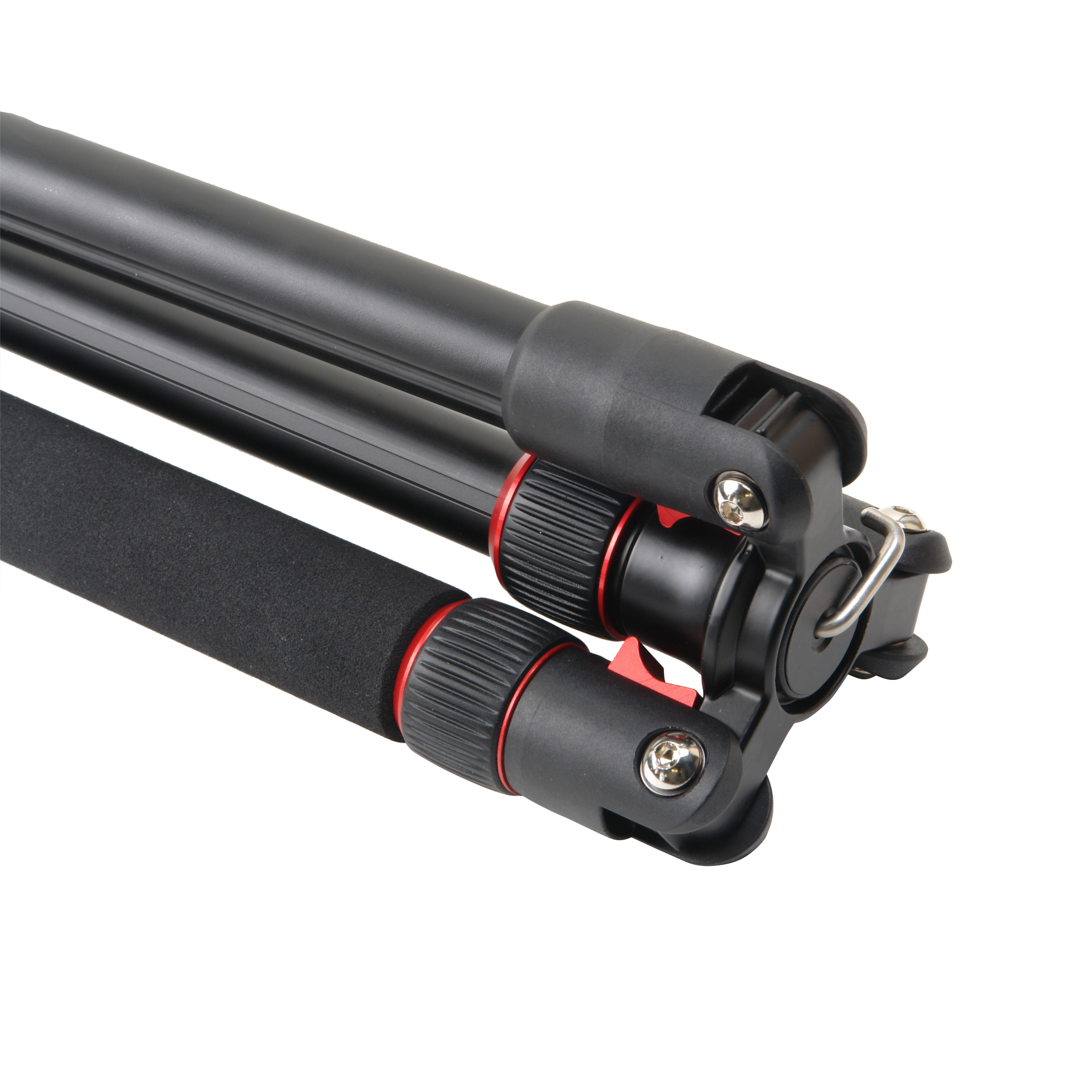 Четыре секции ножек штатива изготовлены из алюминиевого сплава. Анодированное покрытие обеспечивает сопротивление коррозии, а большой диаметр секций позволяет уменьшить вибрацию. Диаметр ножек штатива — 26, 23, 20 и 13 мм. Секции ног надежно фиксируются клипсовыми замками из ABS пластика.