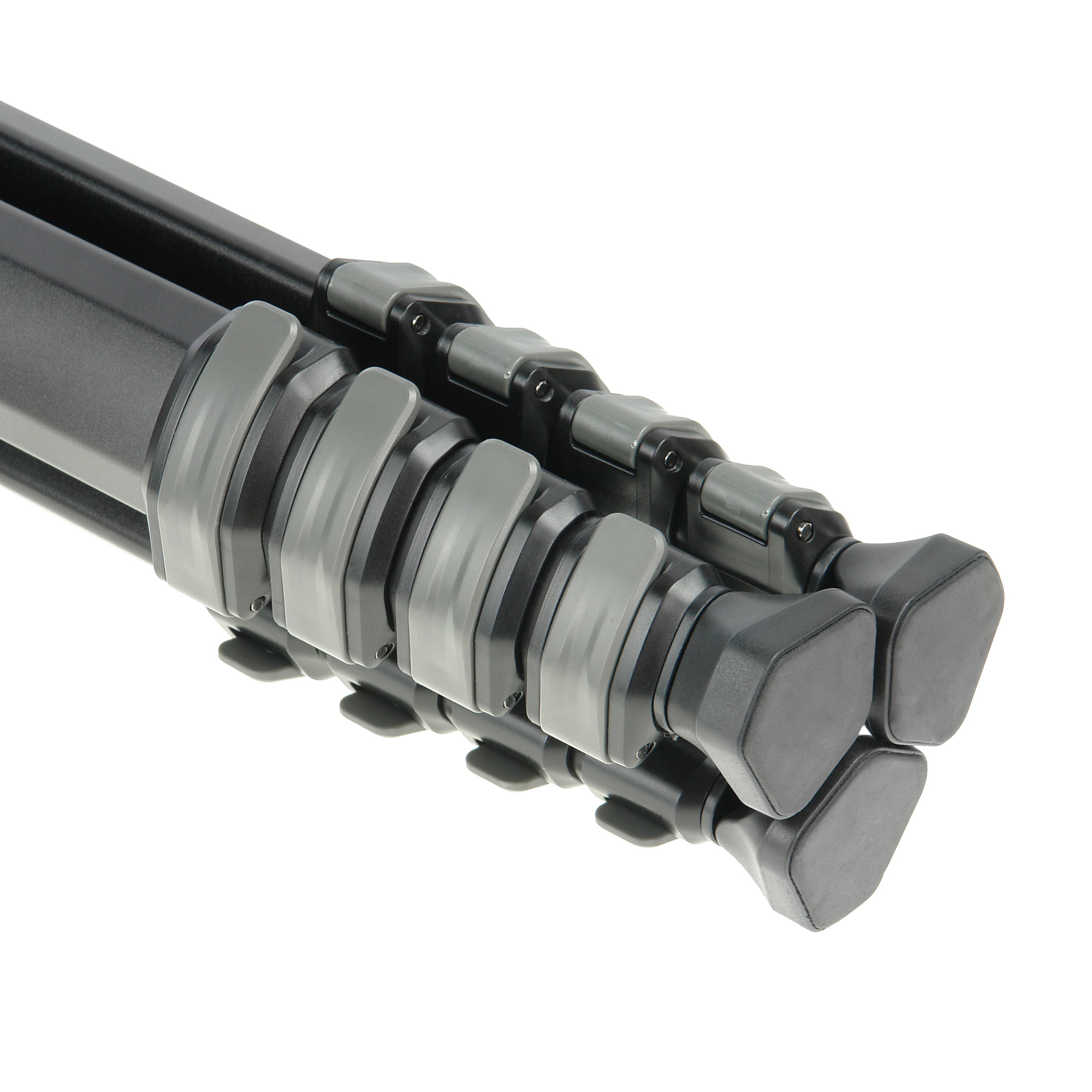 Компактный 5-секционный штатив оснащен клипсовыми зажимами, которые независимо фиксируют телескопические секции ног, чтобы задавать нужную высоту съемки. Предусмотрено три фиксированных рабочих положения ног штатива. Для установки ноги в следующее положение (с большим углом наклона) необходимо нажать на рычаг фиксатора.