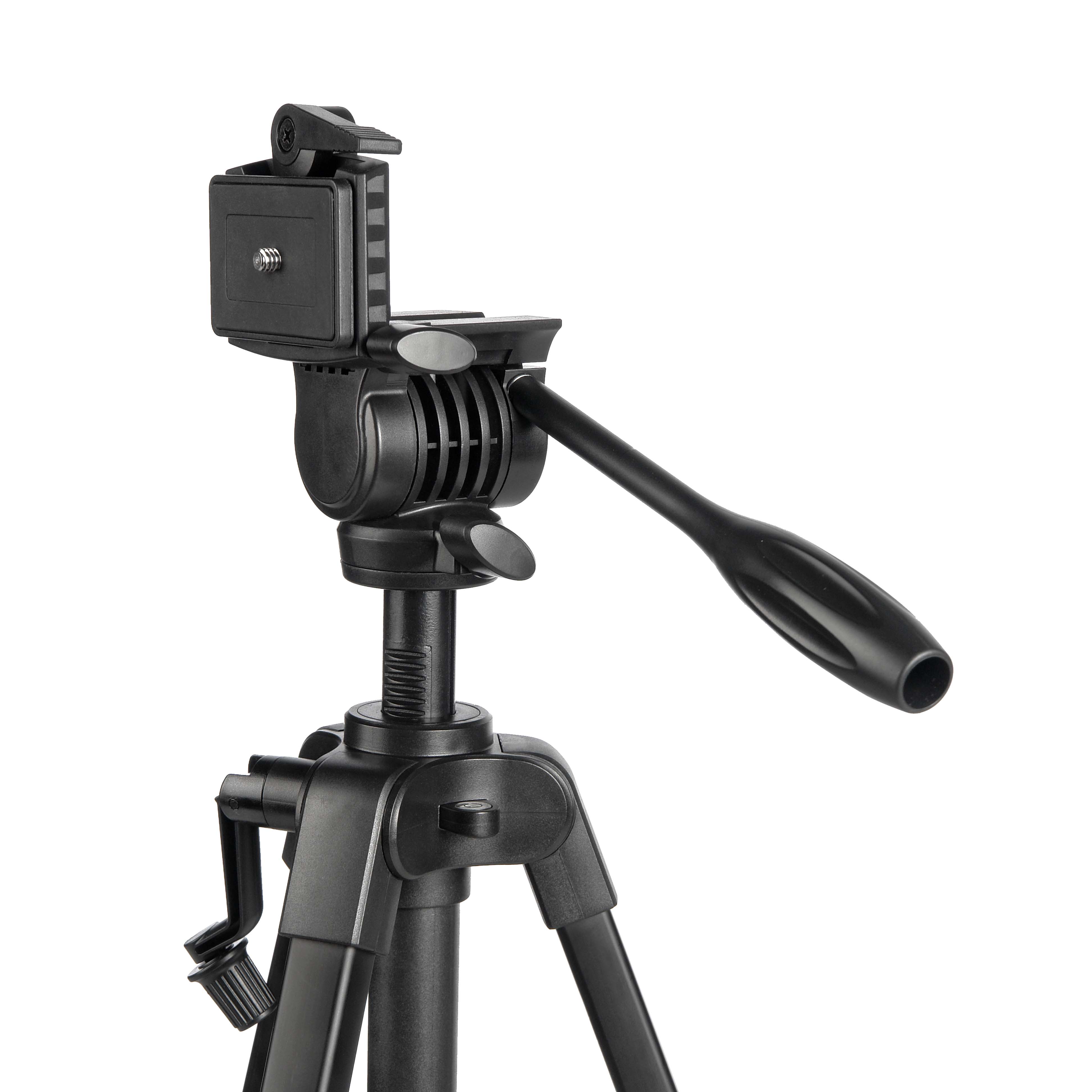 Растяжка с плавным тугим ходом, расположенная в верхней части штатива, обеспечивает дополнительную жёсткость при фиксации его положения.