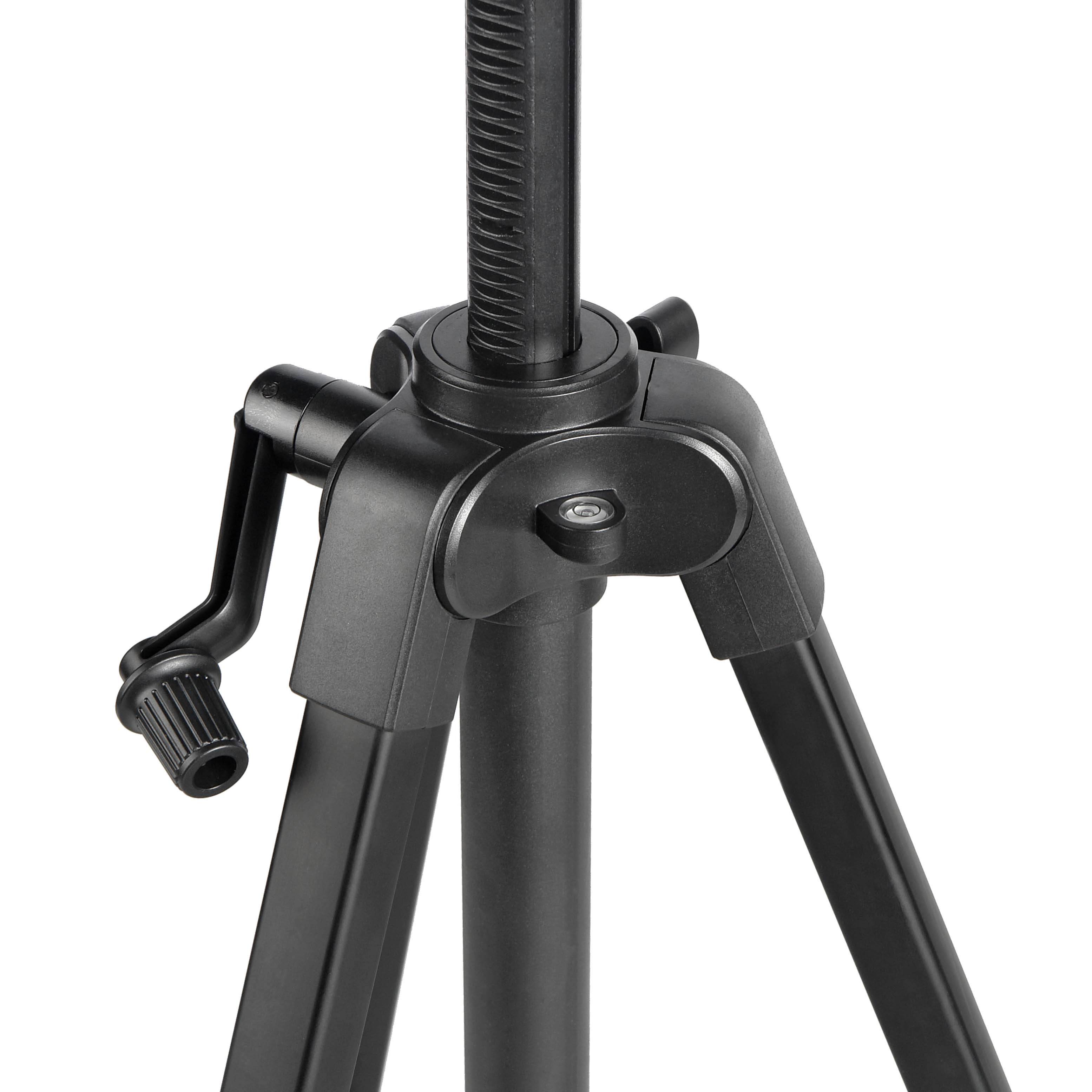 Штатив оснащен микролифтом центральной колонны, пузырьковым уровнем и крюком для груза.