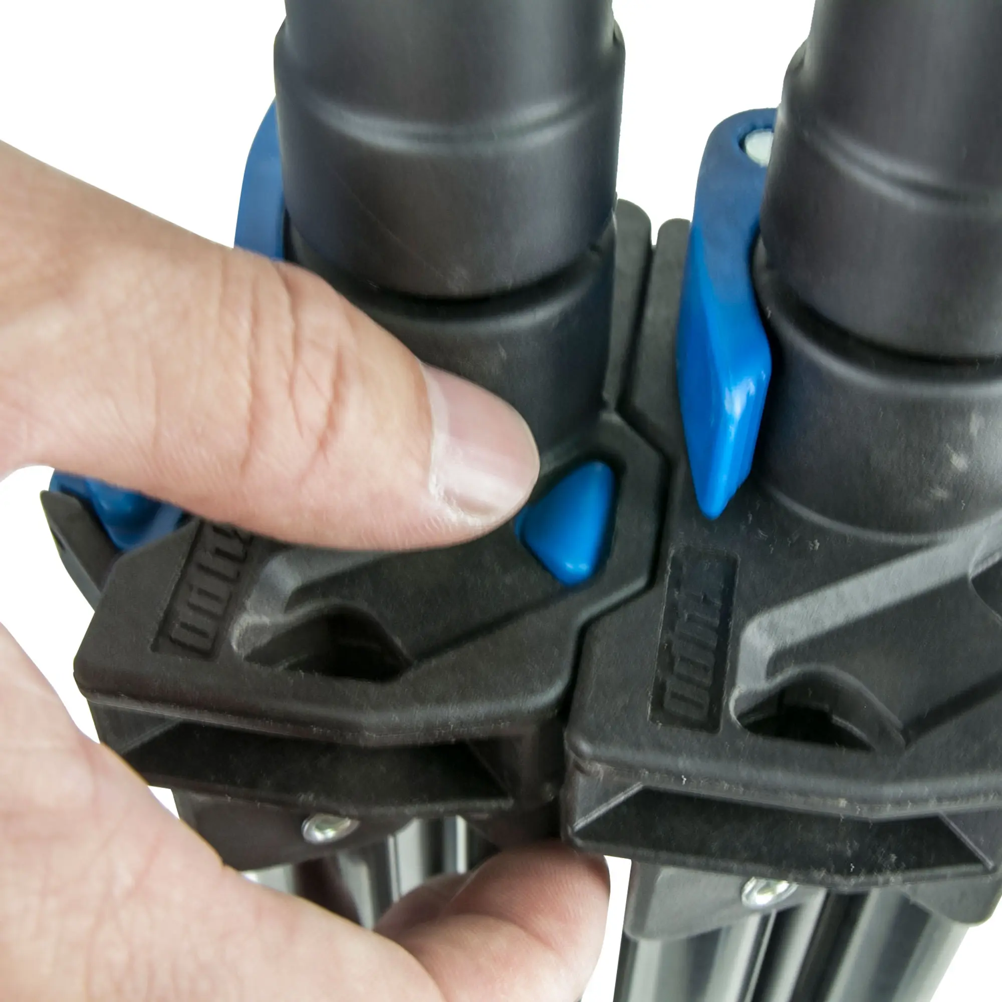 Запатентованный механизм взаимной фиксации позволяет присоединить стойку в сложенном виде к другой стойке всего одним движением. Стойки фиксируются между собой по 4-м сторонам.