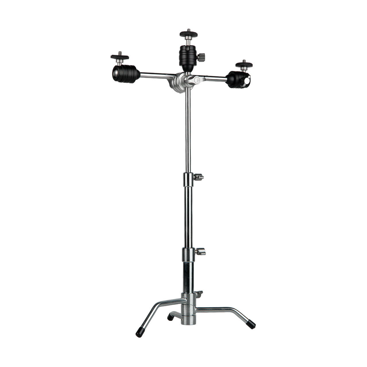Легкая настольная стойка-тренога с перекладиной для компактных цифровых фото и видеокамер. Три точки крепления (площадки шаровых мини-головок) позволяют произвольно закрепить камеру и дополнительное оборудование – свет, микрофон и т.п. Площадки шаровых мини-головок с винтом ¼”.