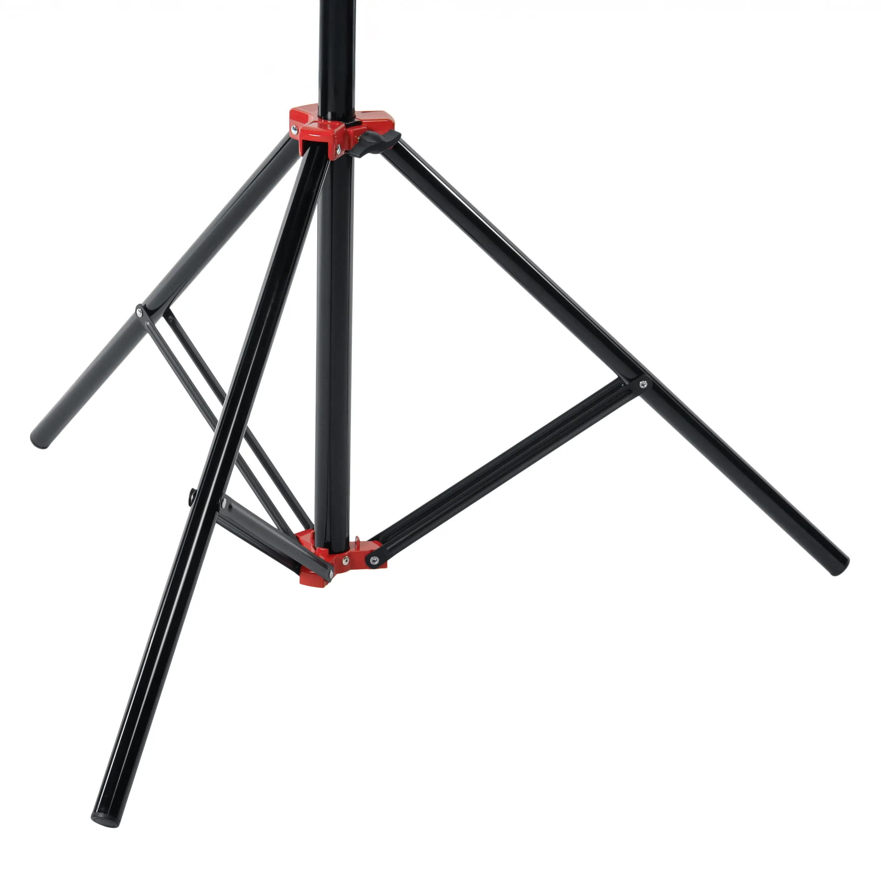 Стойка FEL-3050A/B отличается высоким уровнем исполнения. Все ключевые элементы конструкции — колонны, крестовины и узлы крепления — выполнены из алюминиевого сплава, что обеспечивает легкость и долговечность службы изделия. Черное покрытие деталей защищает поверхность стойки от механических повреждений, сохраняя первоначальный эстетический вид.