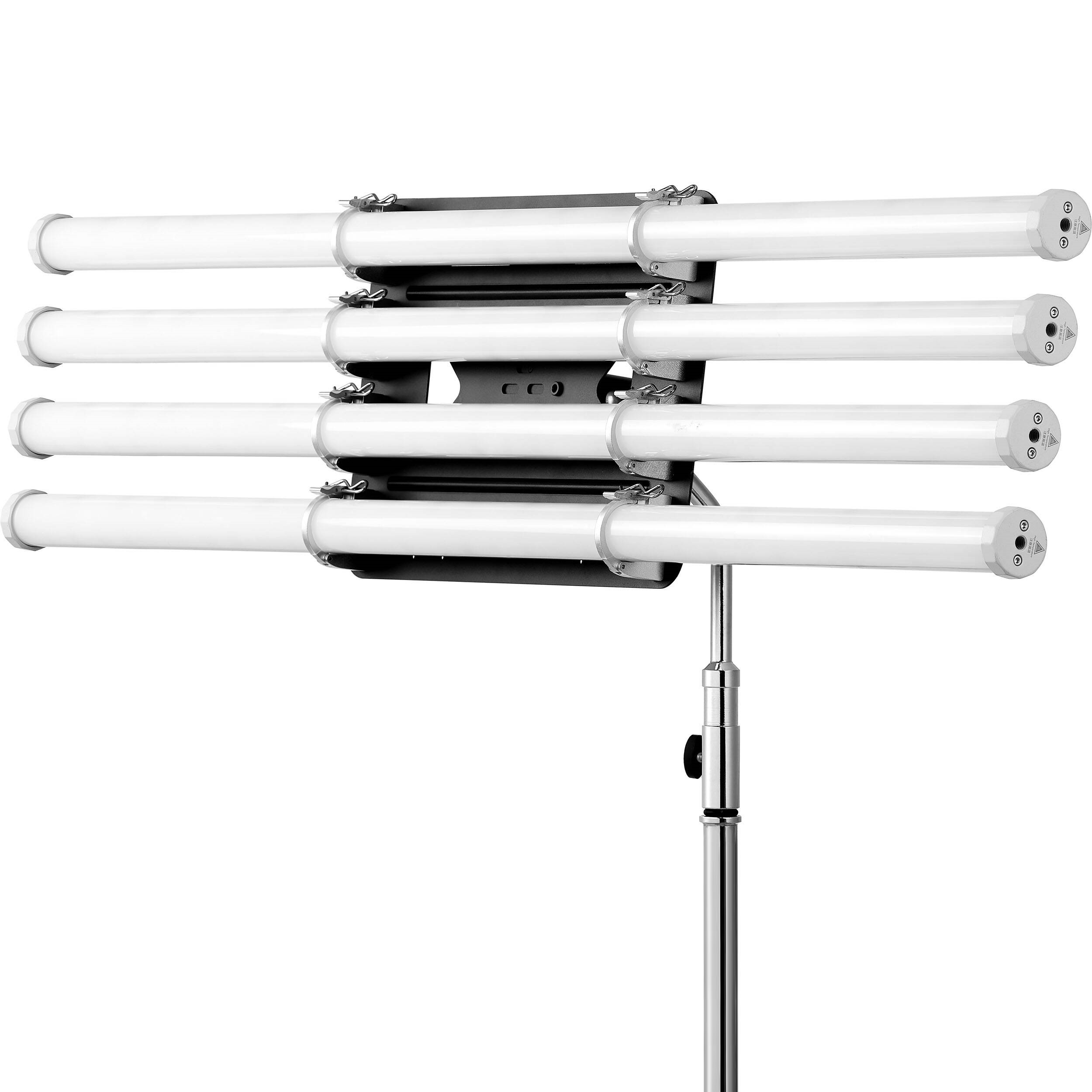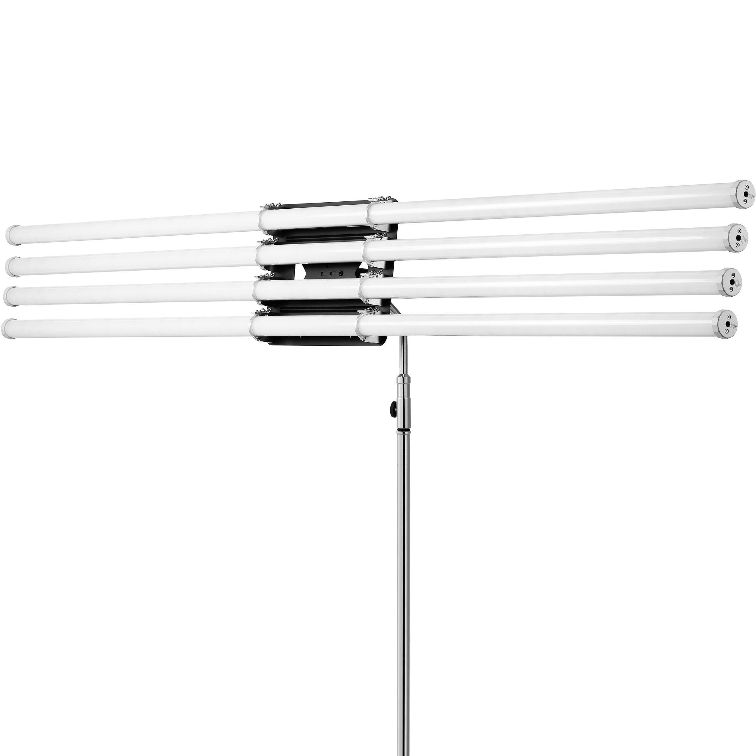 Держатель Knowled Godox TP-B4 позволяет монтировать и жестко фиксировать параллельно друг другу до четырех светодиодных пиксельных осветителей-трубок , , на одну осветительную стойку со стандартным шпиготом 5/8” или другую опору. Для осветителей Knowled TP8R рекомендуем использовать несколько держателей.