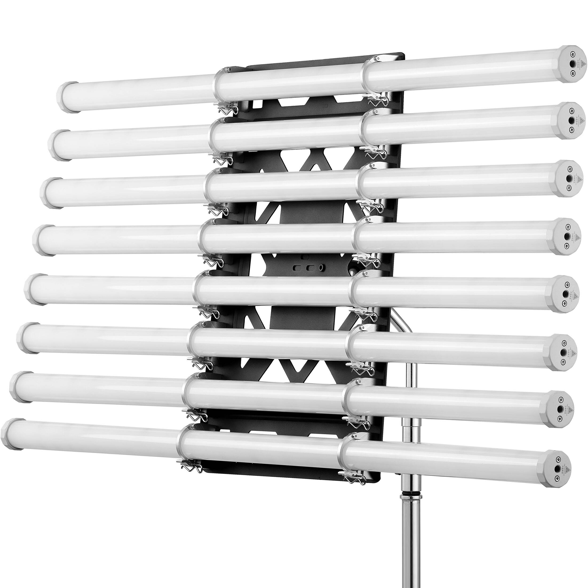 Держатель Knowled Godox TP-B8 позволяет монтировать и жестко фиксировать параллельно друг другу до восьми светодиодных пиксельных осветителей-трубок , , на одну осветительную стойку со стандартным шпиготом 5/8” или другую опору. Для осветителей Knowled TP8R рекомендуем использовать несколько держателей.