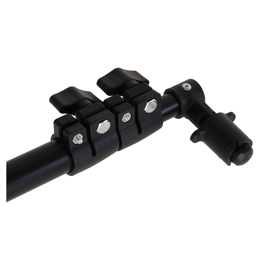 Штанга, крепежный узел и зажимная рукоятка изготовлены из металла.