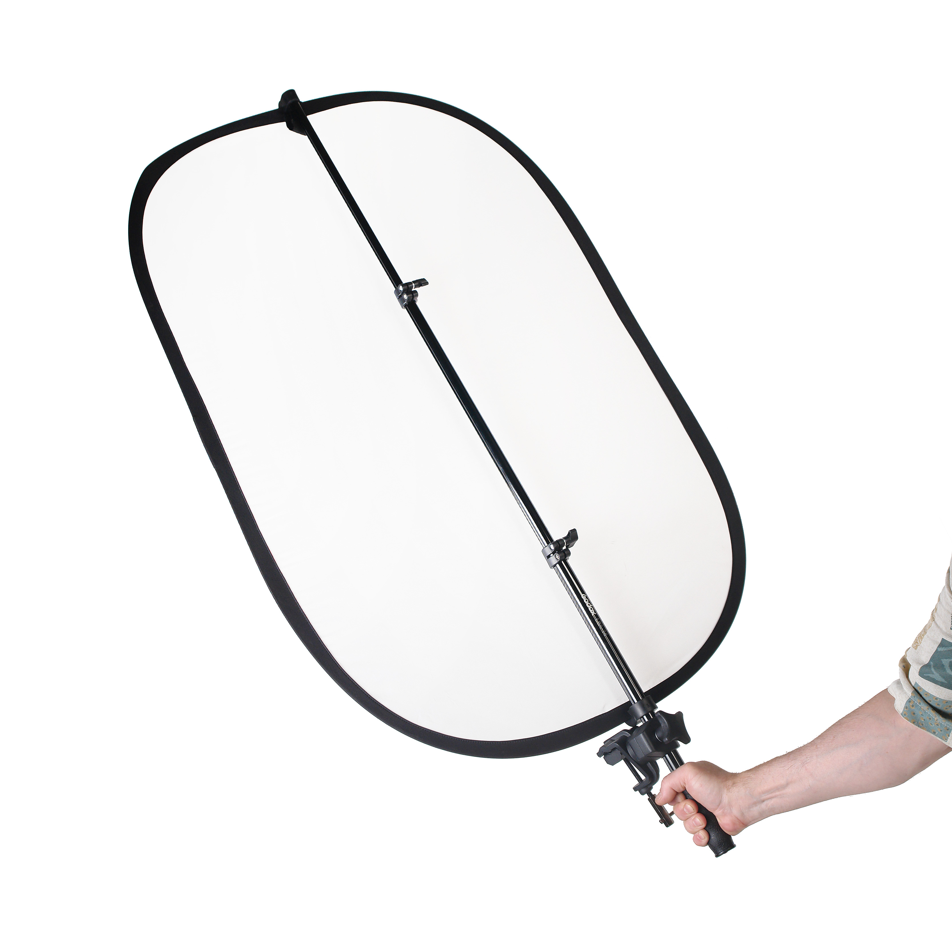 Длина держателя регулируется выдвижением телескопических секций Ø22/19/15 мм. На крайних секциях размещены резиновые захваты для зажима отражателя. Минимальное расстояние между захватами 32 см, максимальное 116 см.