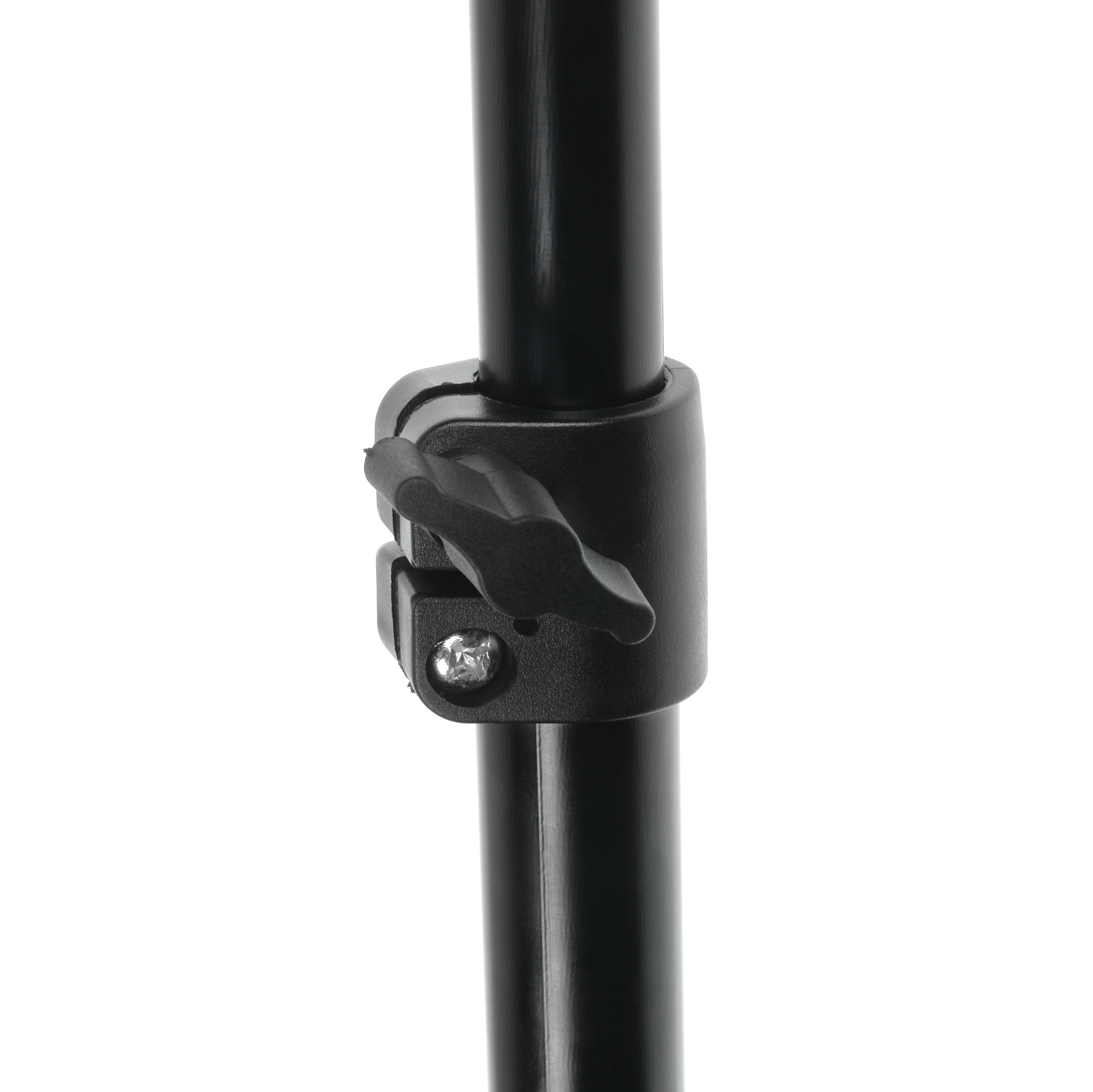 Две телескопические секции Ø22 и 25 мм позволяют регулировать высоту установки от от 32 до 55 см. На конце секции закреплен несъемный стальной установочный шпигот 5/8" с винтом 1/4".