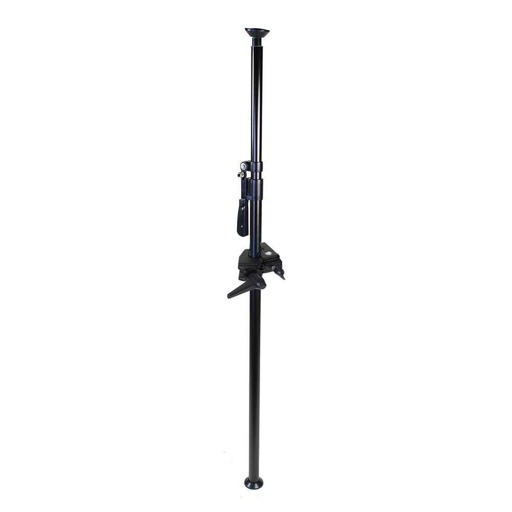 Рычажное устройство зажима со стопором выполняет одновременно несколько функций: фиксирует подвижную секцию, раздвигает секции для зажима распорки между полом и потолком, блокирует рукоятку на предохранитель.