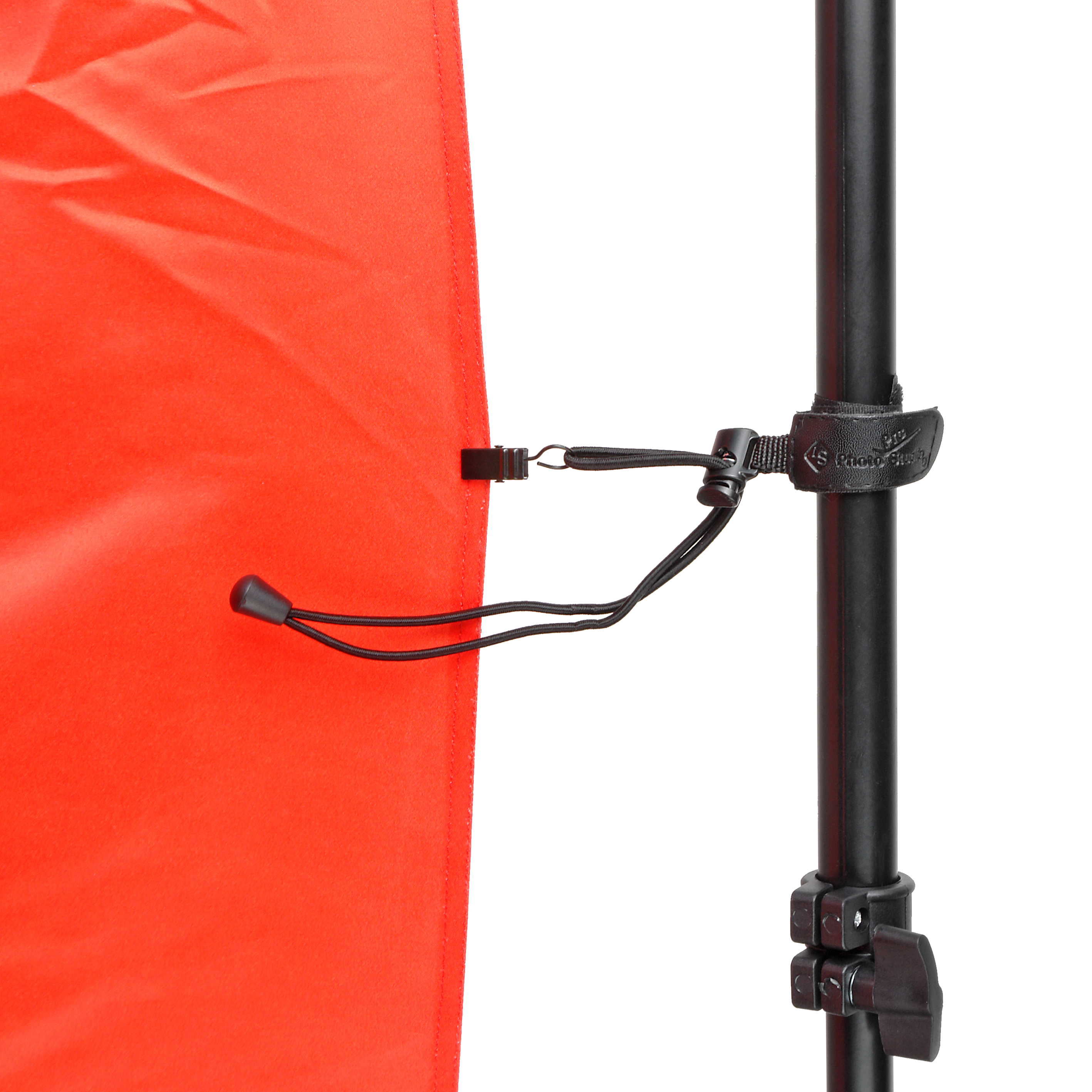 Растяжка Falcon Eyes BG-35C с велкро петлей и клипсой может использоваться для натяжения или подвеса фотофона. Для этого растяжка закрепляется при помощи велкро петли вокруг стойки или штанги, а полотно фона зажимается металлической клипсой.