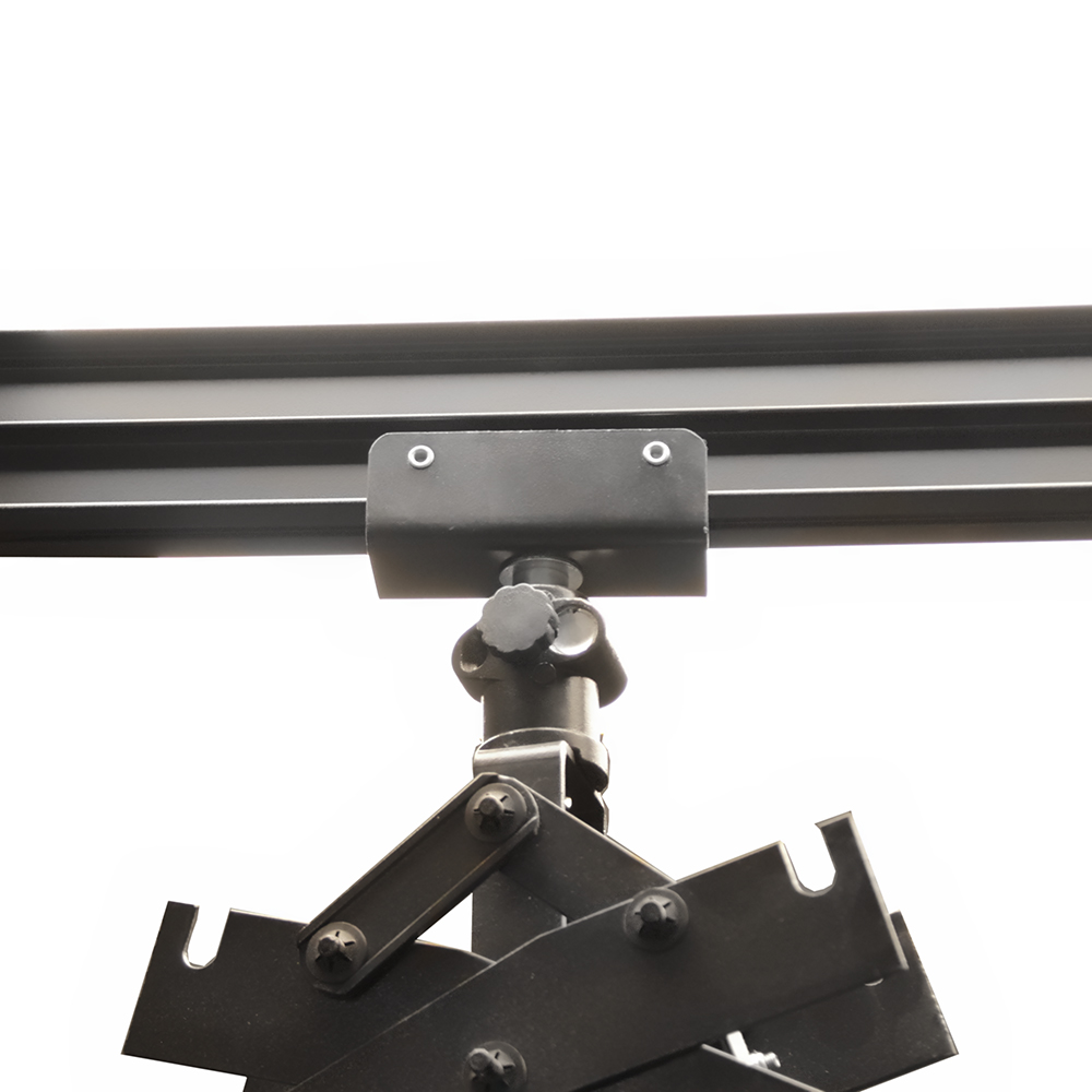С помощью подпружиненного тросика пантограф легко поднимается к потолку и занимает мало места, а в разложенном виде - опускает прибор на нужную высоту и фиксирует его благодаря храповому механизму, который не позволяет пантографу сложиться. Ход пантографа 180 см.