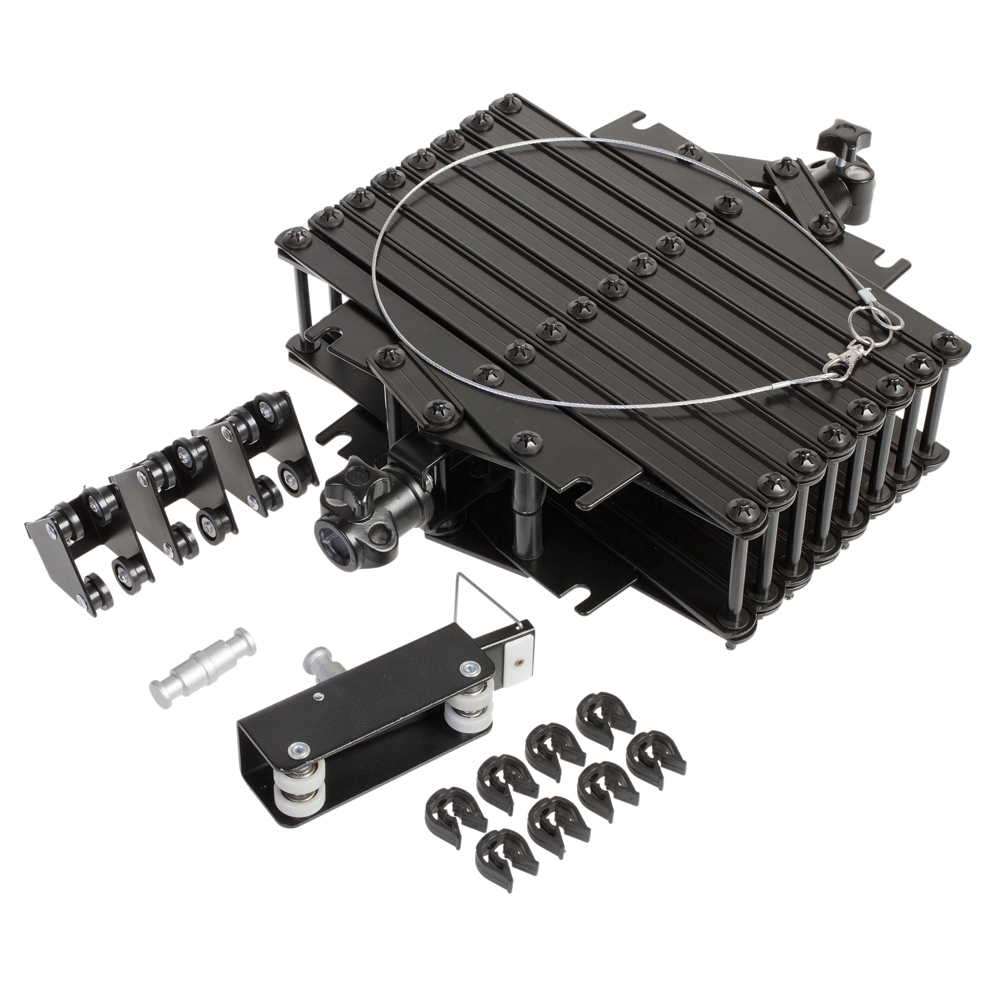Основной особенностью системы является очень малая высота в полностью собранном положении, что особенно важно в студиях, где высота ограничена.