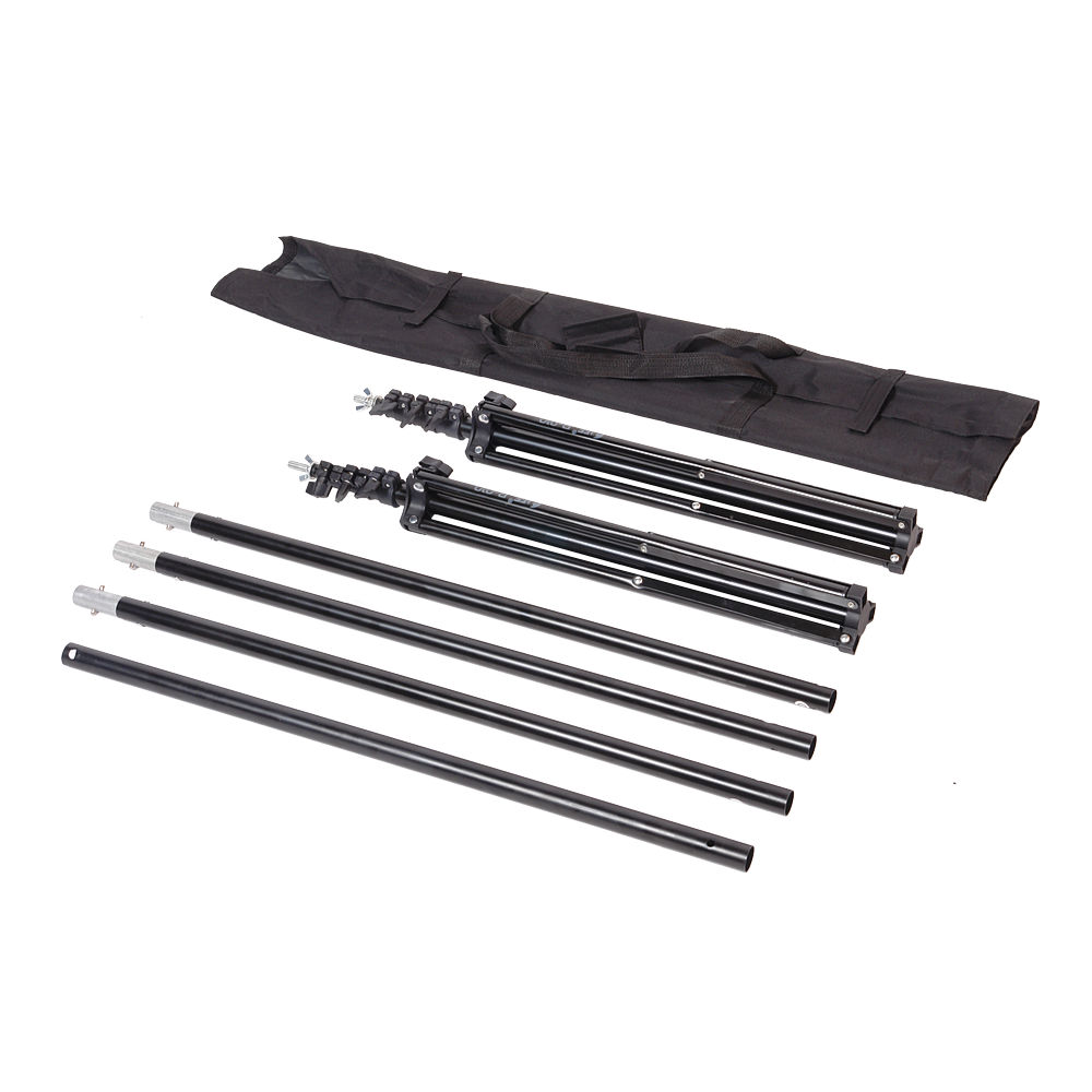 Система установки фона Falcon Eyes В-010 предназначена для крепления фонов шириной до 300 см на высоту от 74 до 238 см. Система состоит из двух стоек и составной горизонтальной перекладины. Лёгкая и компактная конструкция позволяет использовать систему как на выезде, так и в студии. В сложенном состоянии комплект помещается в сумку-чехол. Регулируемая рабочая высота позволяет снимать как небольшие предметы и объекты, так и ростовые портреты.