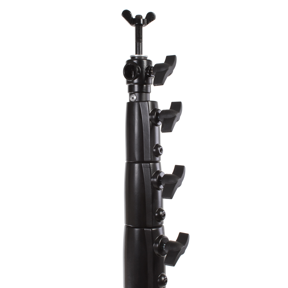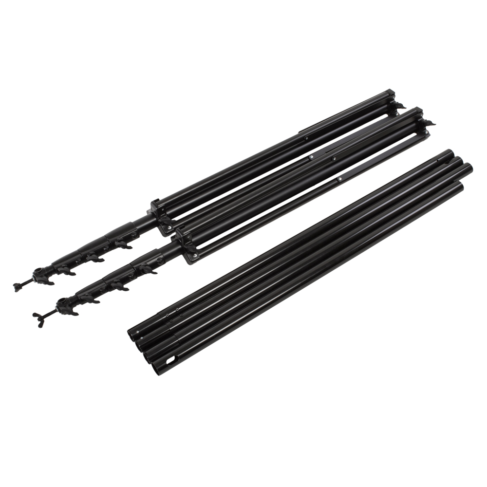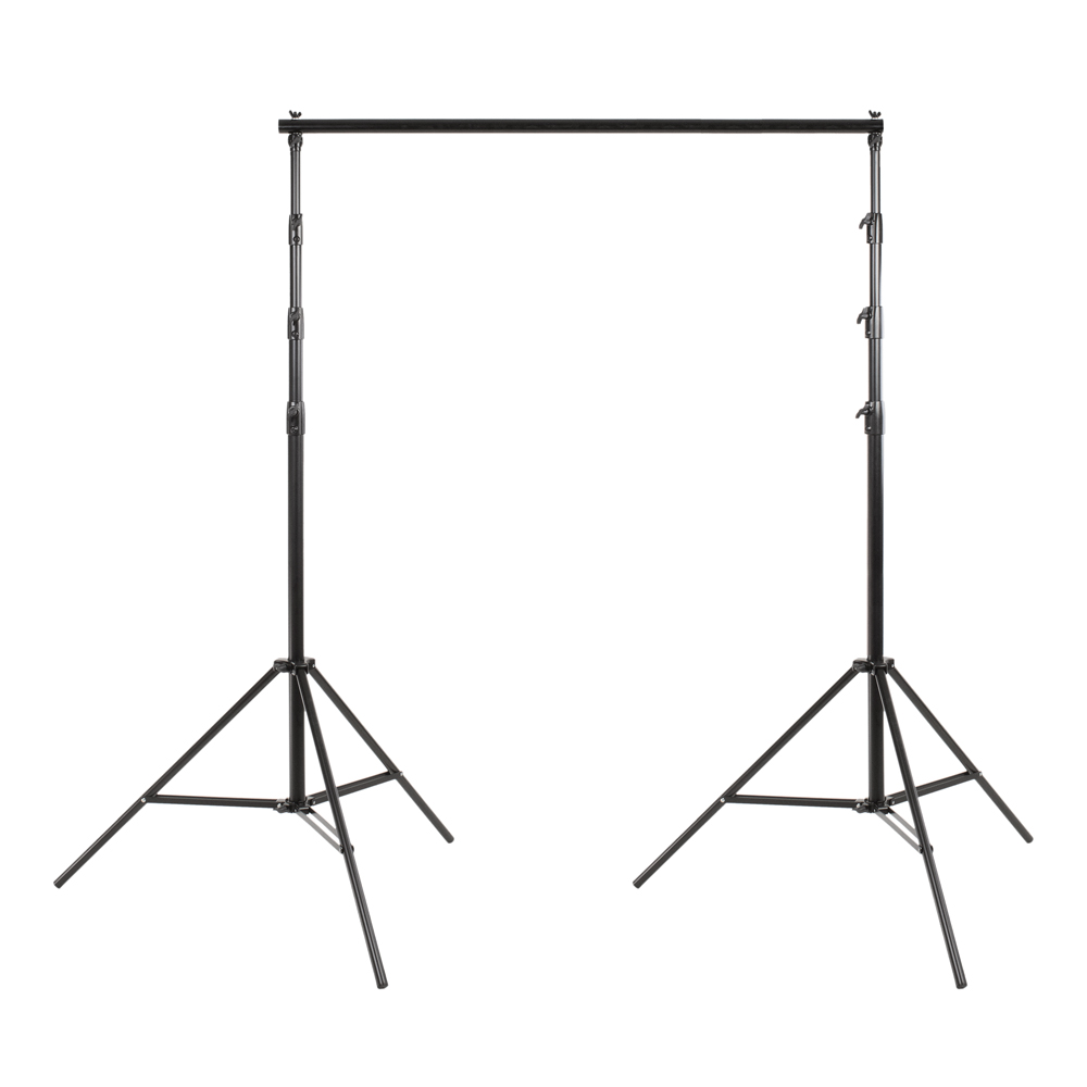 Система установки тканевого фона поставляется в комплекте из двух стоек, составной перекладины и стойки.