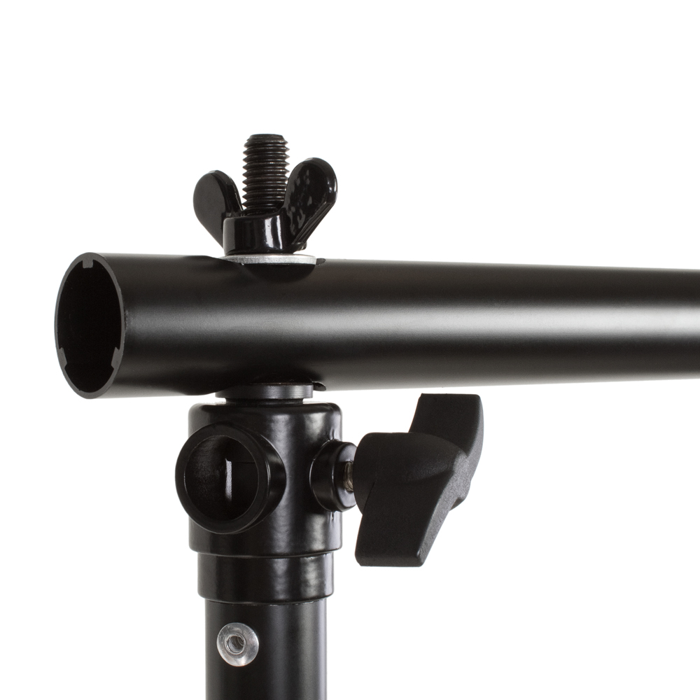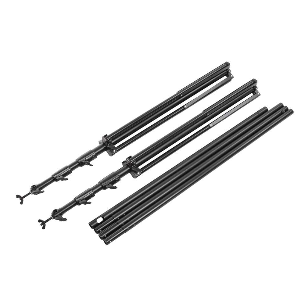Система установки тканевого фона поставляется в комплекте из двух стоек, составной перекладины и сумки.