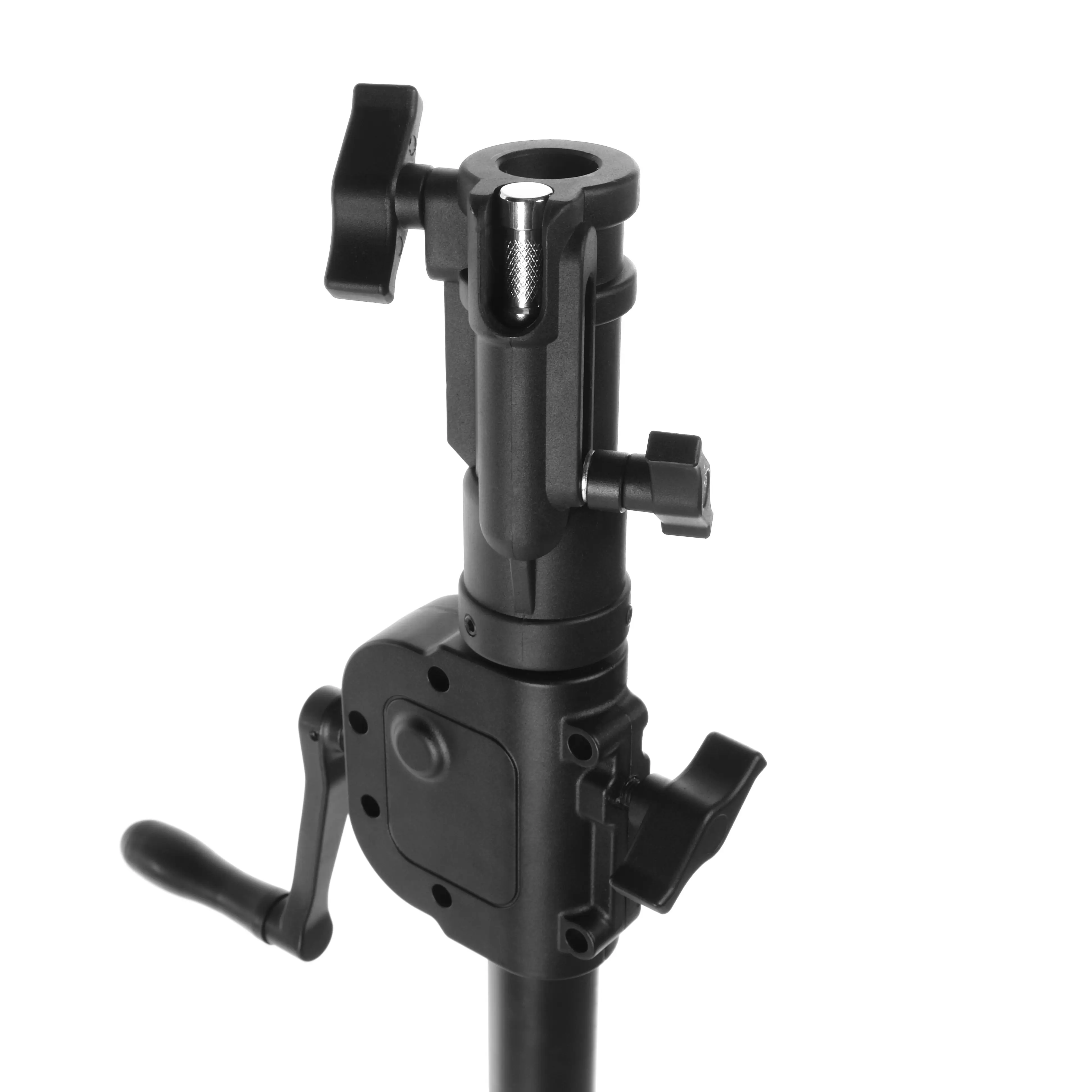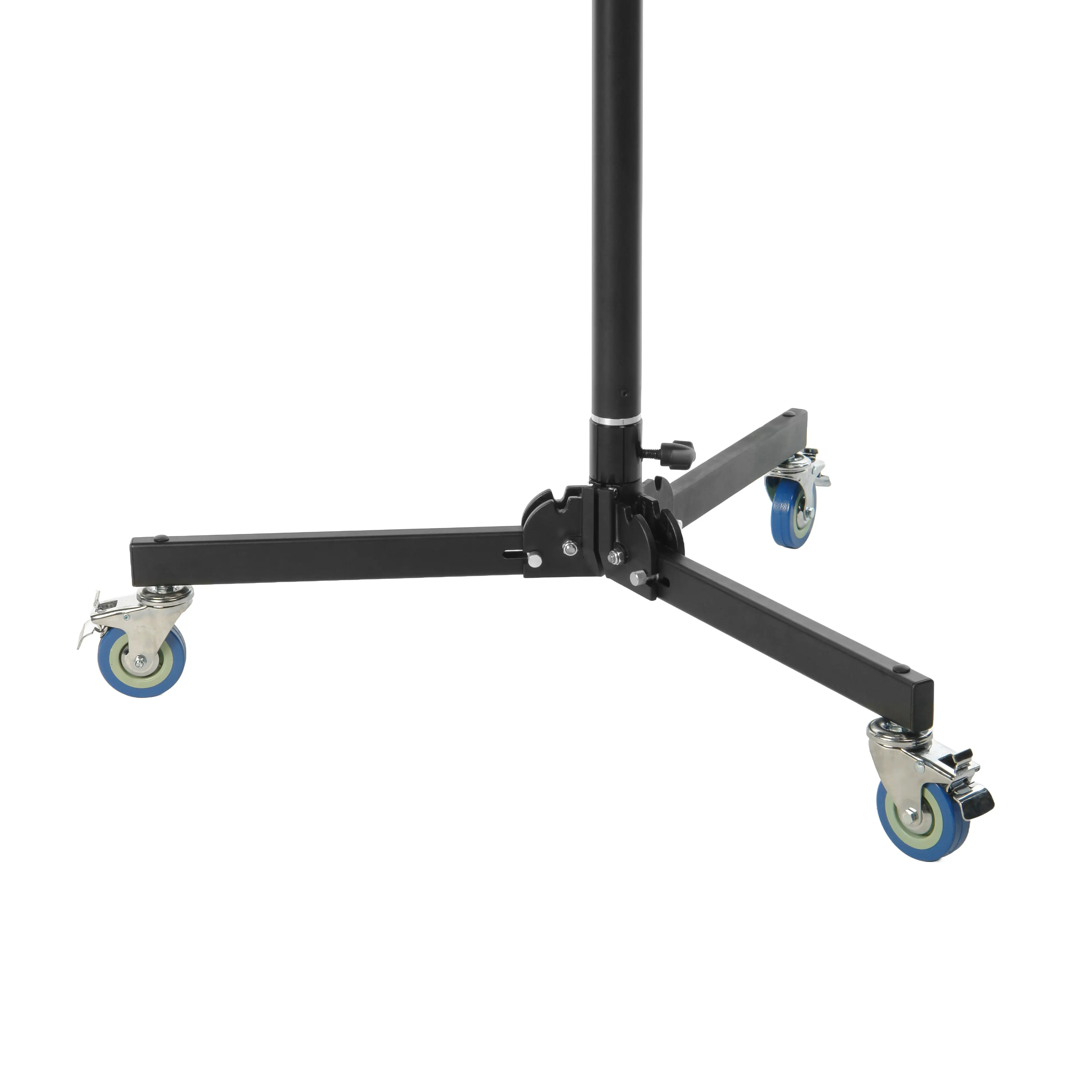 Изготовленная из высококачественной стали, напольная стойка обладает высокой прочностью и долговечностью. Черное матовое антикоррозийное покрытие на основе железа эффективно защищает металл от коррозии и увеличивает срок службы изделия. Также черный матовый цвет стойки идеально подходит для работы в студии, поскольку минимизирует блики и отражает меньше света, создавая более контролируемую съемочную среду.