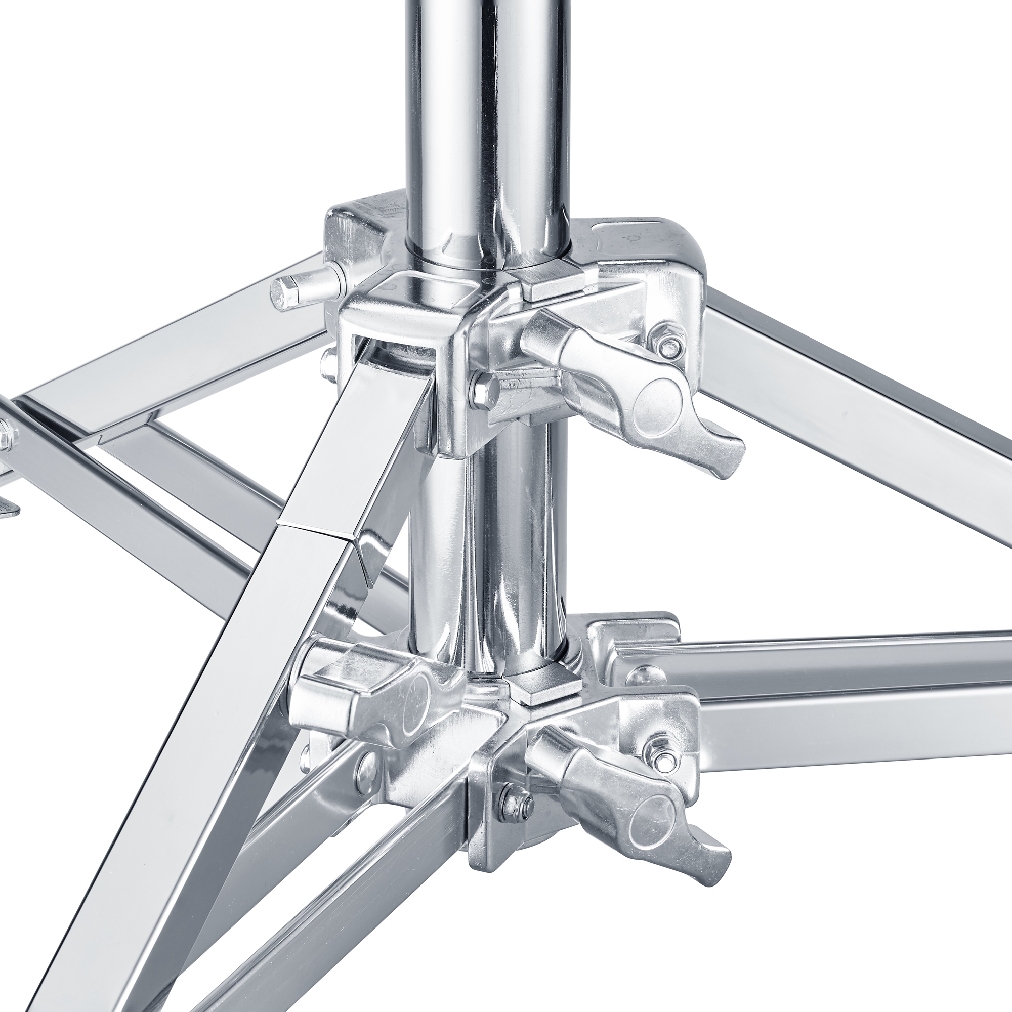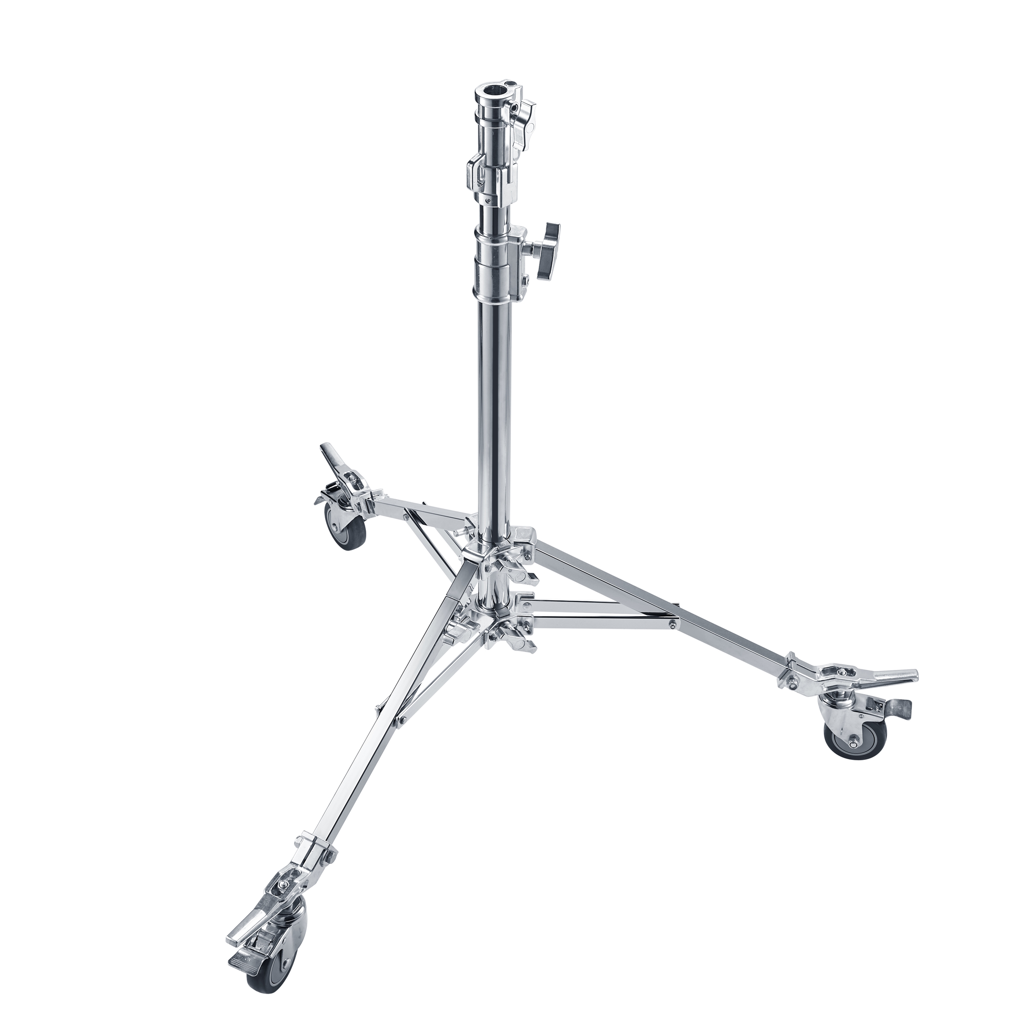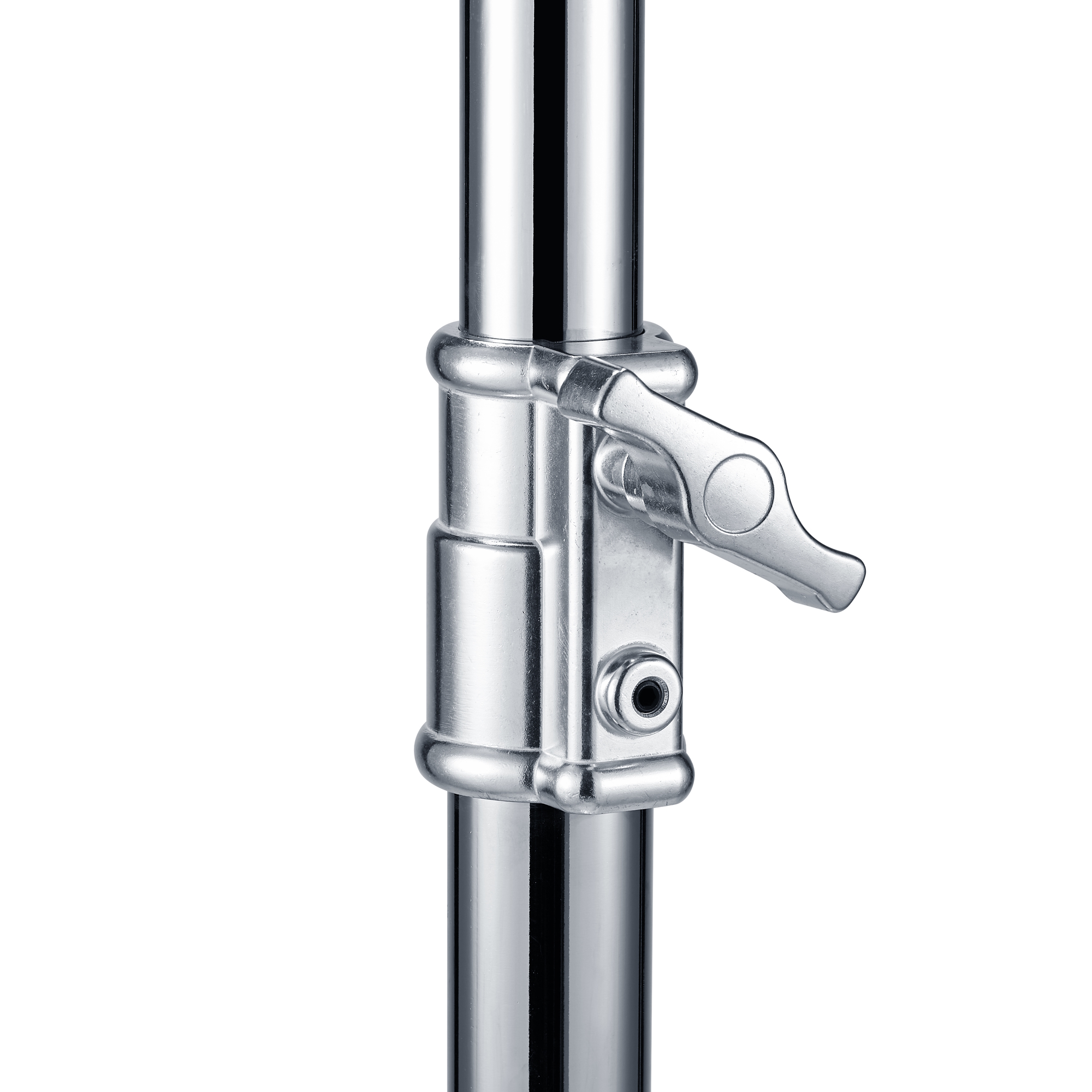 Высота стойки в рабочем состоянии от 92 см до 168 см обеспечивается выдвижением телескопической секции колонны с усиленными винтовыми зажимами. Секции колонны изготавливаются из трубы большого диаметра 42 и 48 мм, обеспечивающими высокую грузоподъемность. Секции оснащены пружинным амортизатором, который дает возможность безопасно поднимать и опускать установленное оборудование на необходимую высоту, не опасаясь последствий падения оборудования из-за случайного ослабления зажимов.