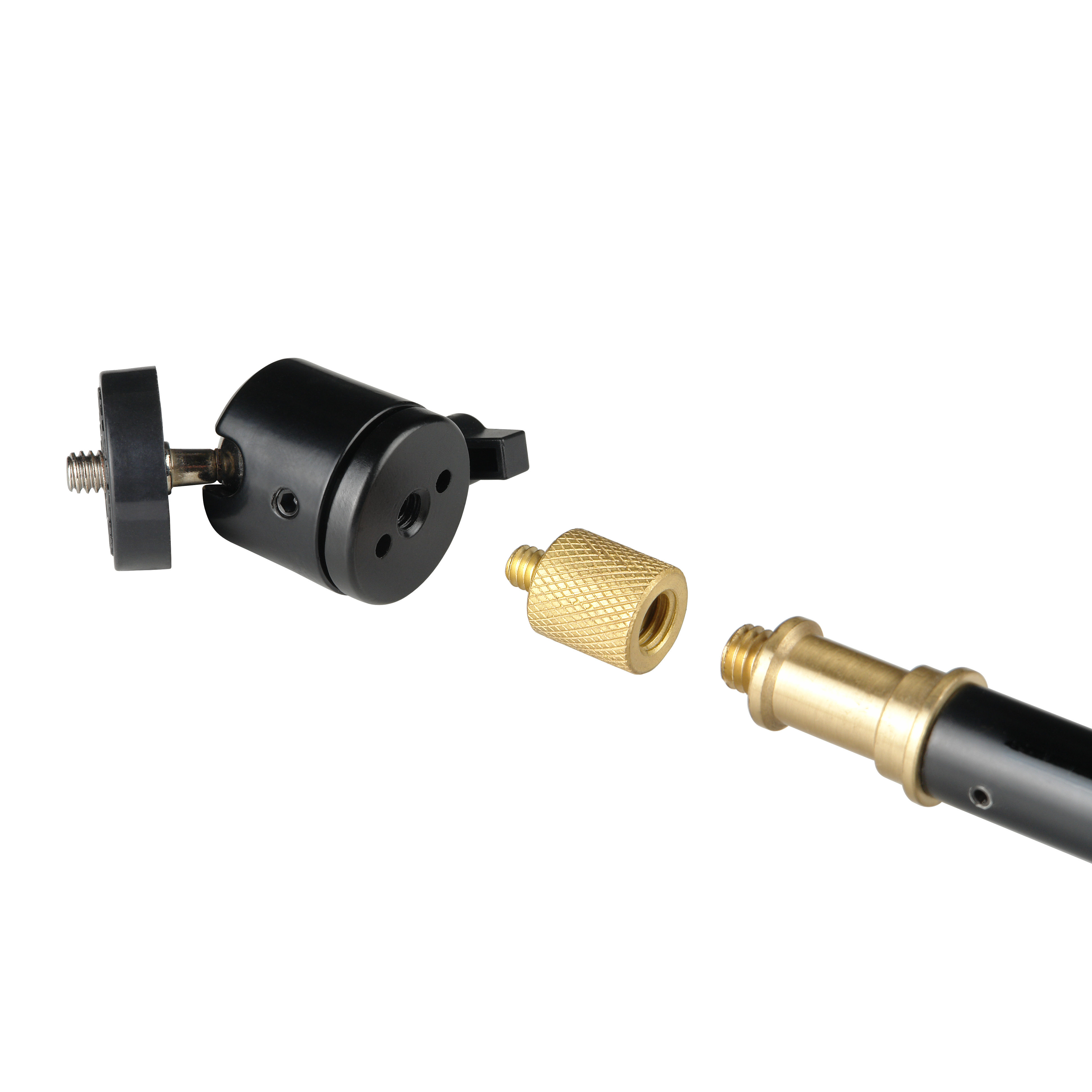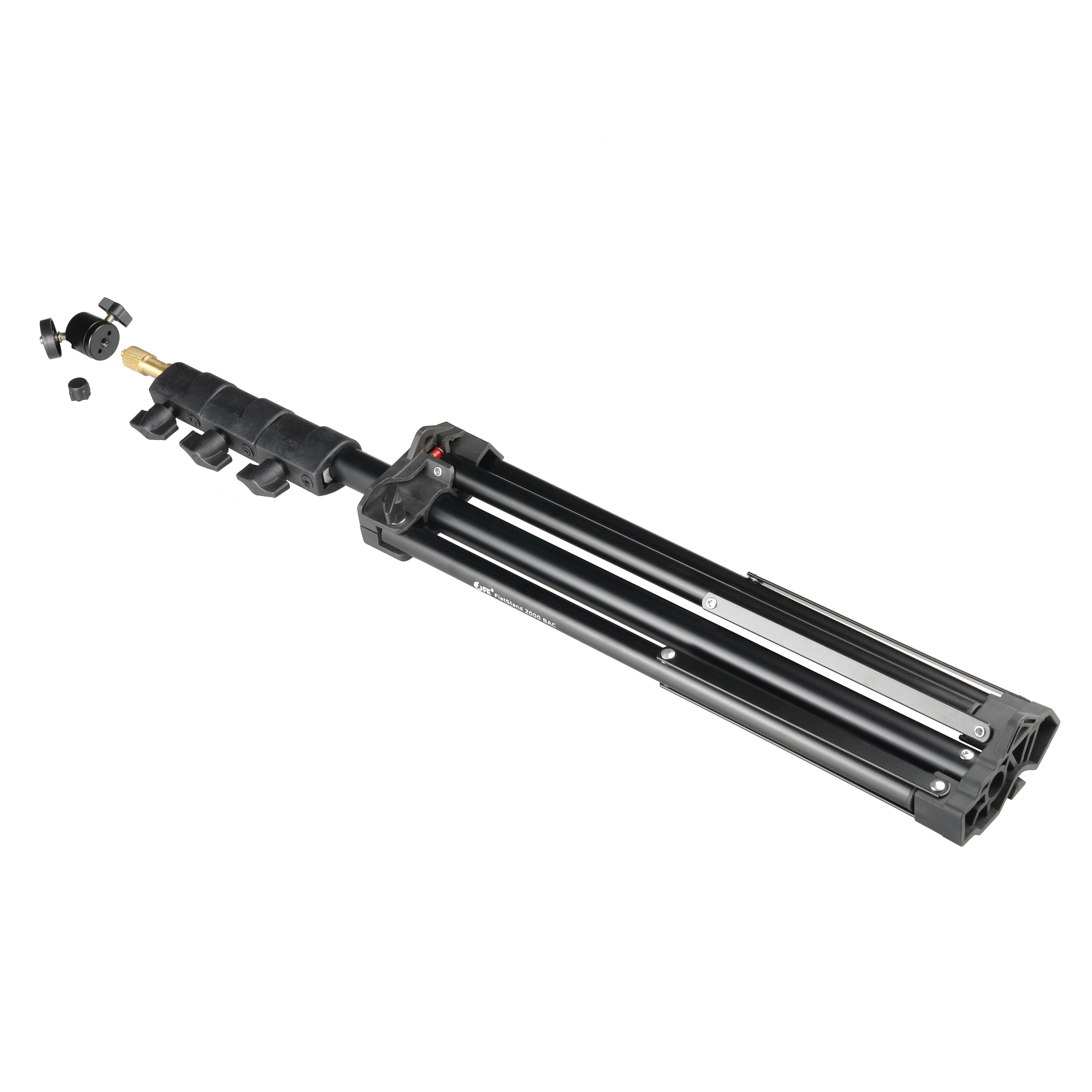 Механизм воздушной амортизации обеспечивает сохранность дорогостоящей техники от резкого удара при непреднамеренном, резком ее «сложении». Все секции и ноги стойки-треноги изготовлены из алюминиевого сплава, зажимы – из прочного, утолщенного ABC-пластика.