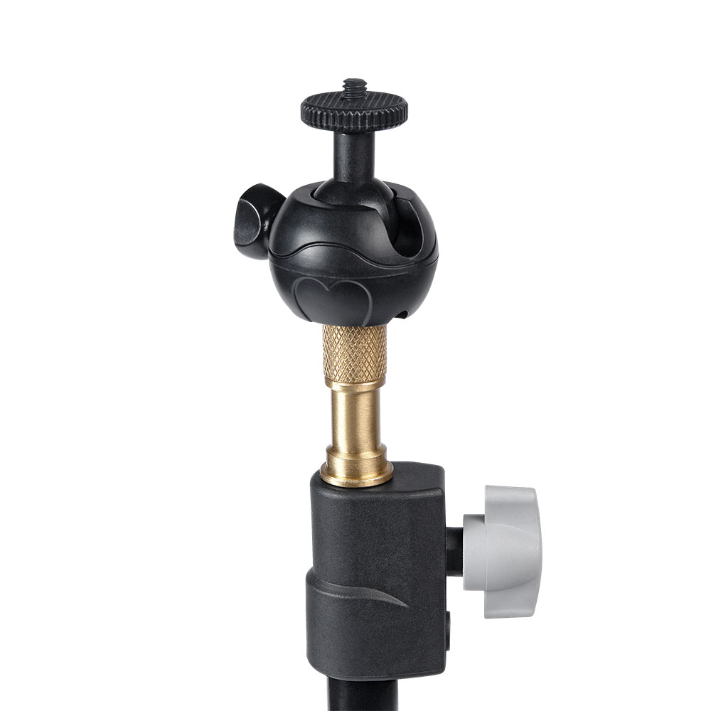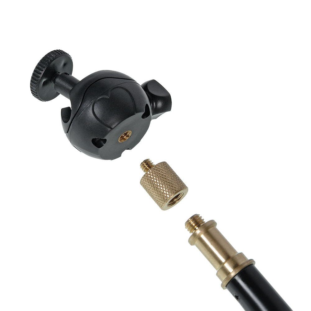 Стойка-тренога Falcon Eyes FlatStand 2400BAC укомплектована съемной пластиковой шаровой головкой для цифровых камер, с возможностью поворота установочной площадки на 90°. Диаметр 40 мм. Крепится на резьбу 1/4” на шпиготе (бронза) стойки, посадочный винт на площадке – 1/4”.