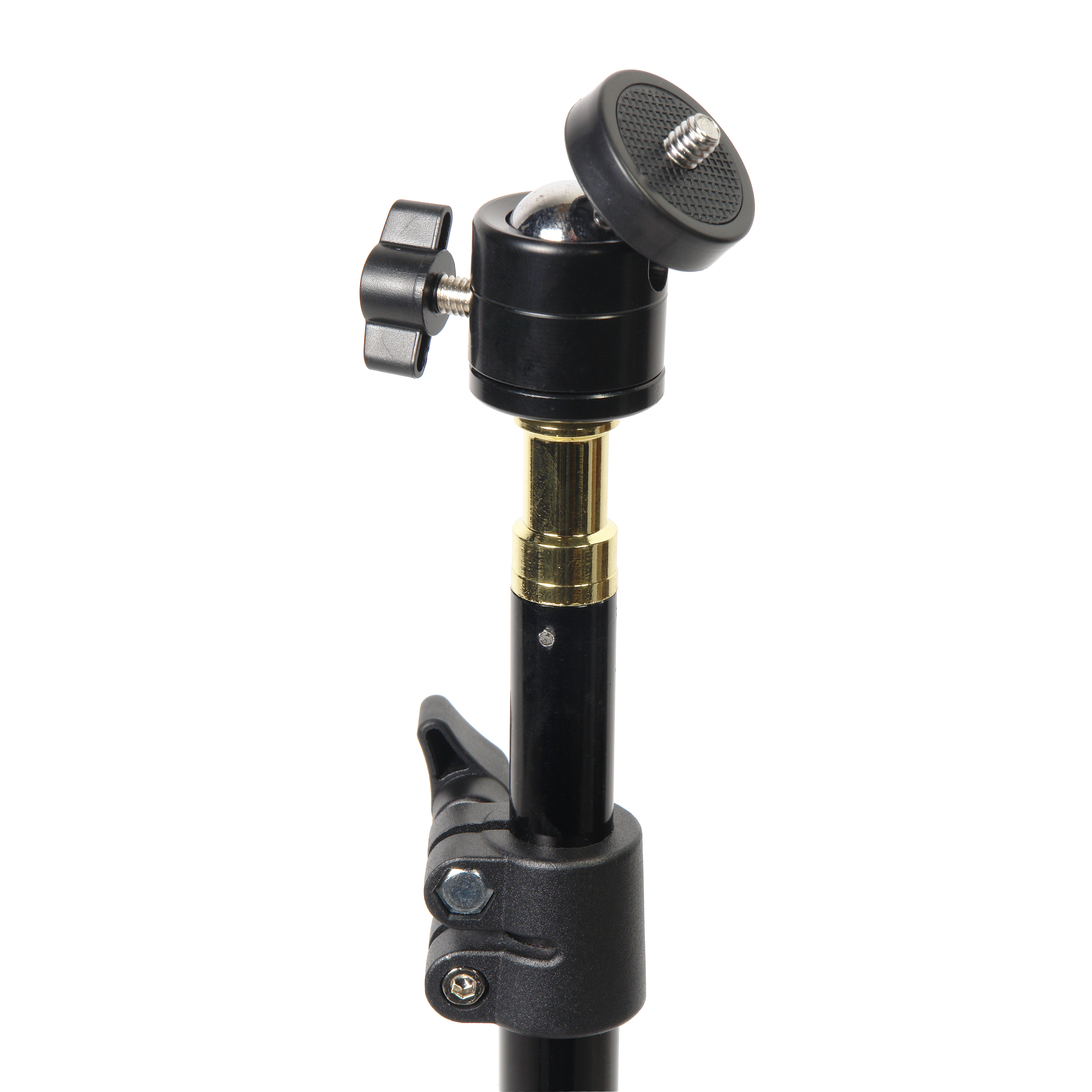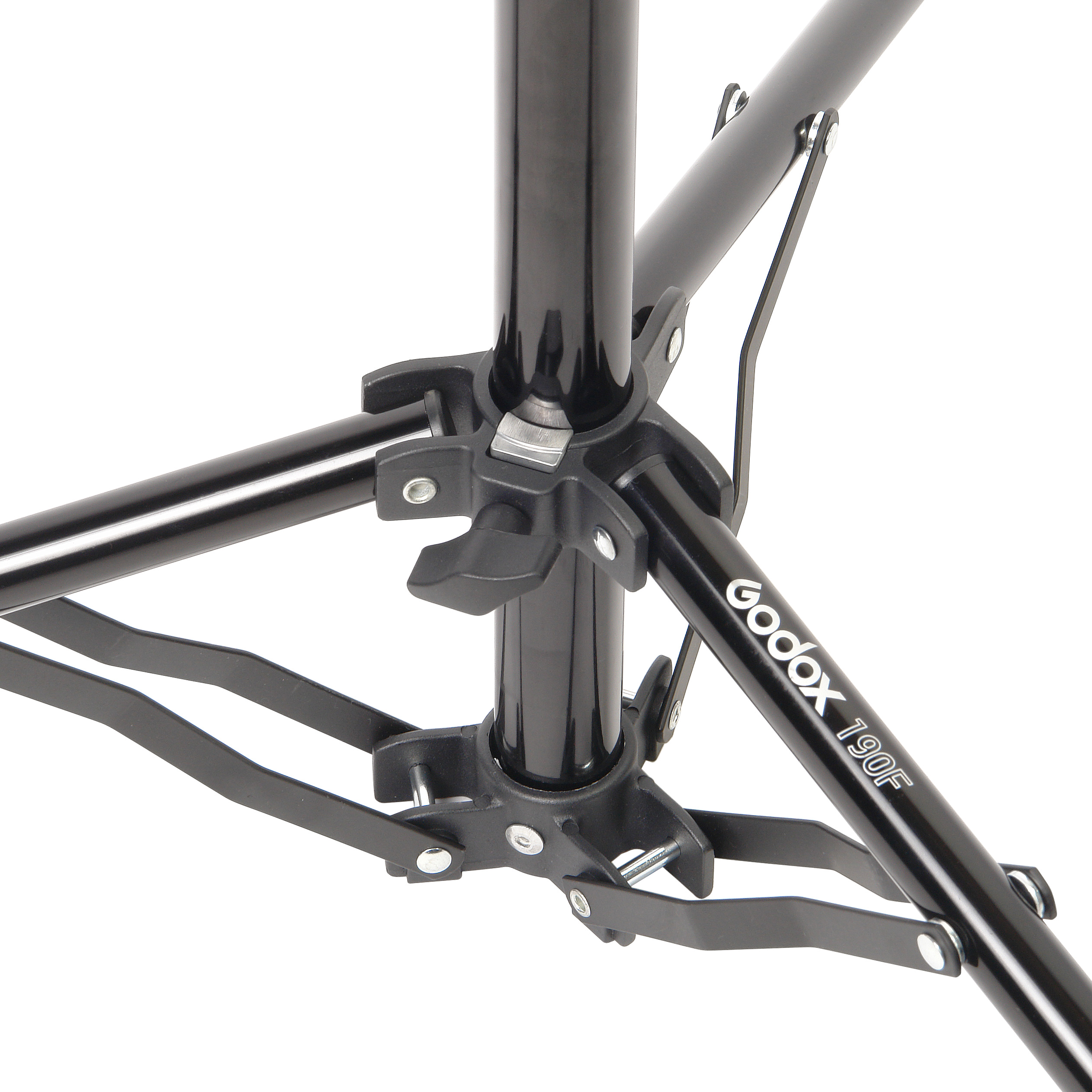 Стойка Godox 190F снабжена шаровой головкой с металлическими корпусом и шаром, а также металлическим винтом на конце (с посадочной резьбой 1/4”), на который устанавливаются, например, цифровые камеры. Установленное оборудование может вращаться вокруг своей оси на 360 и наклоняться вперед в пределах 90°.