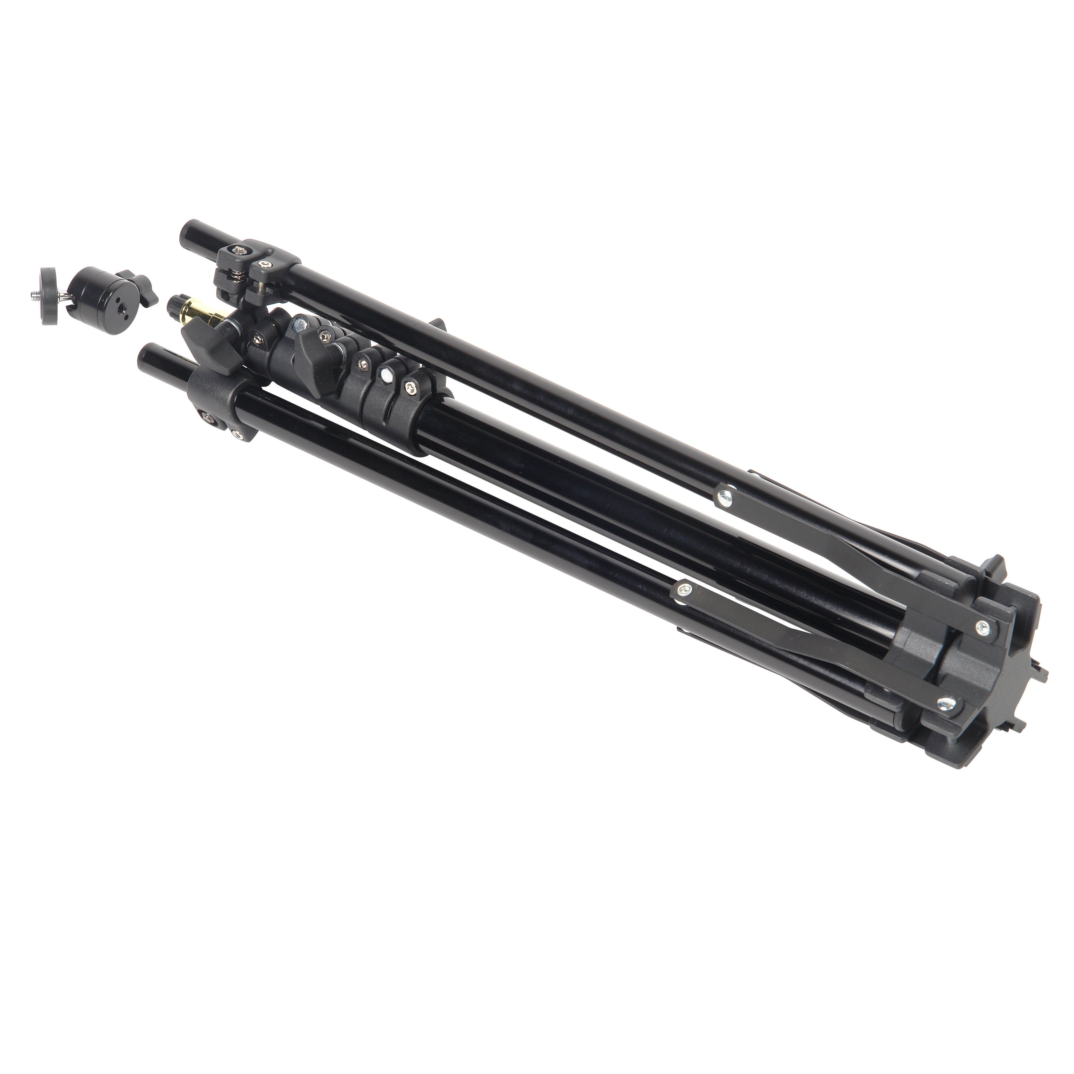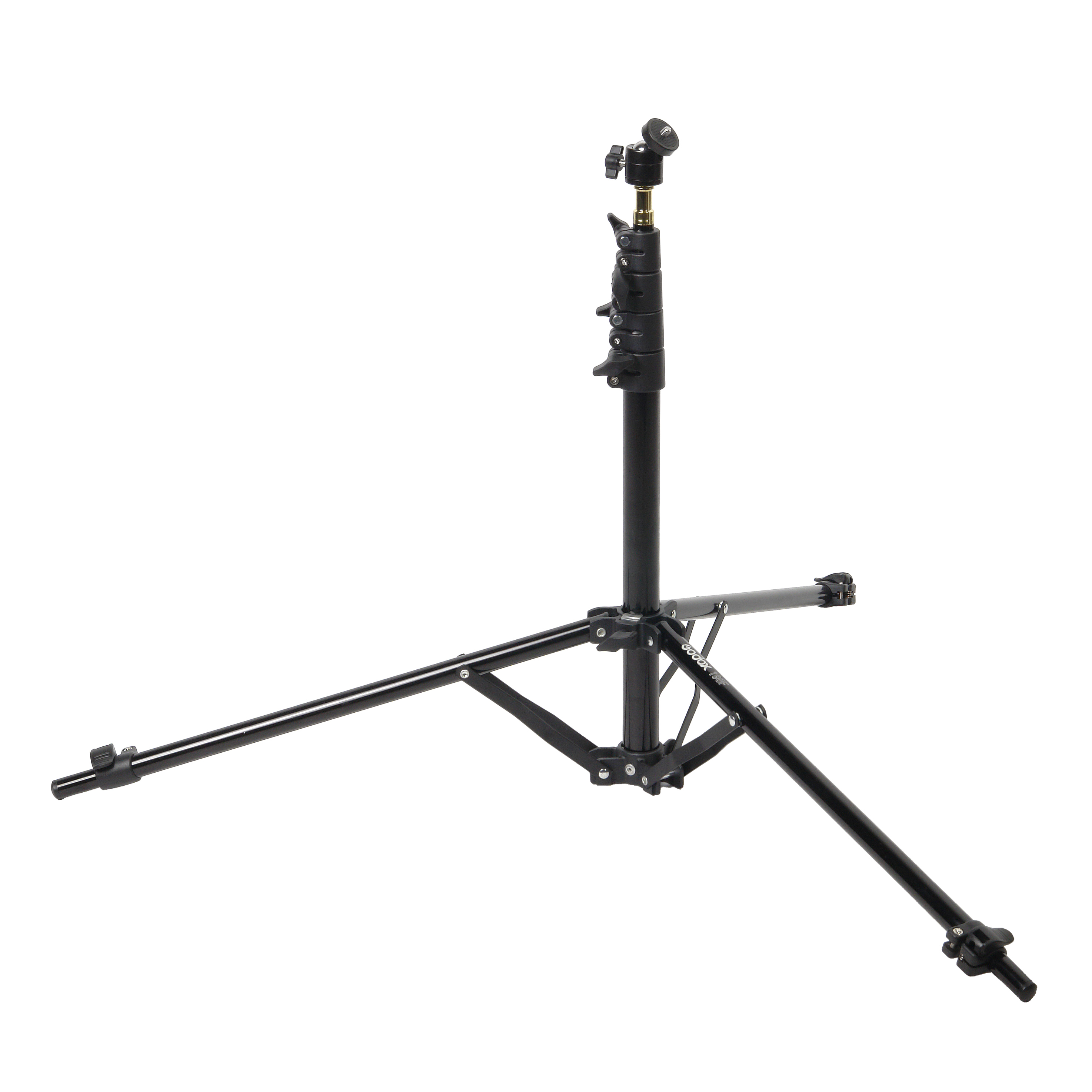 Godox 190F - алюминиевая стойка-тренога с 5-секционной телескопической центральной колонной, на конце которой закреплен несъемный латунный шпигот диаметром 5/8” с резьбой 1/4” и шаровой головкой. Стойка предназначена для установки цифровых камер для съемки в фото- или видеостудии, а также на выезде. Длина стойки в сложенном виде - 49 см, максимальная высота 188 см, вес 1.4 кг. Стойка выдерживает осевую (вертикальную) нагрузку до 3 кг.