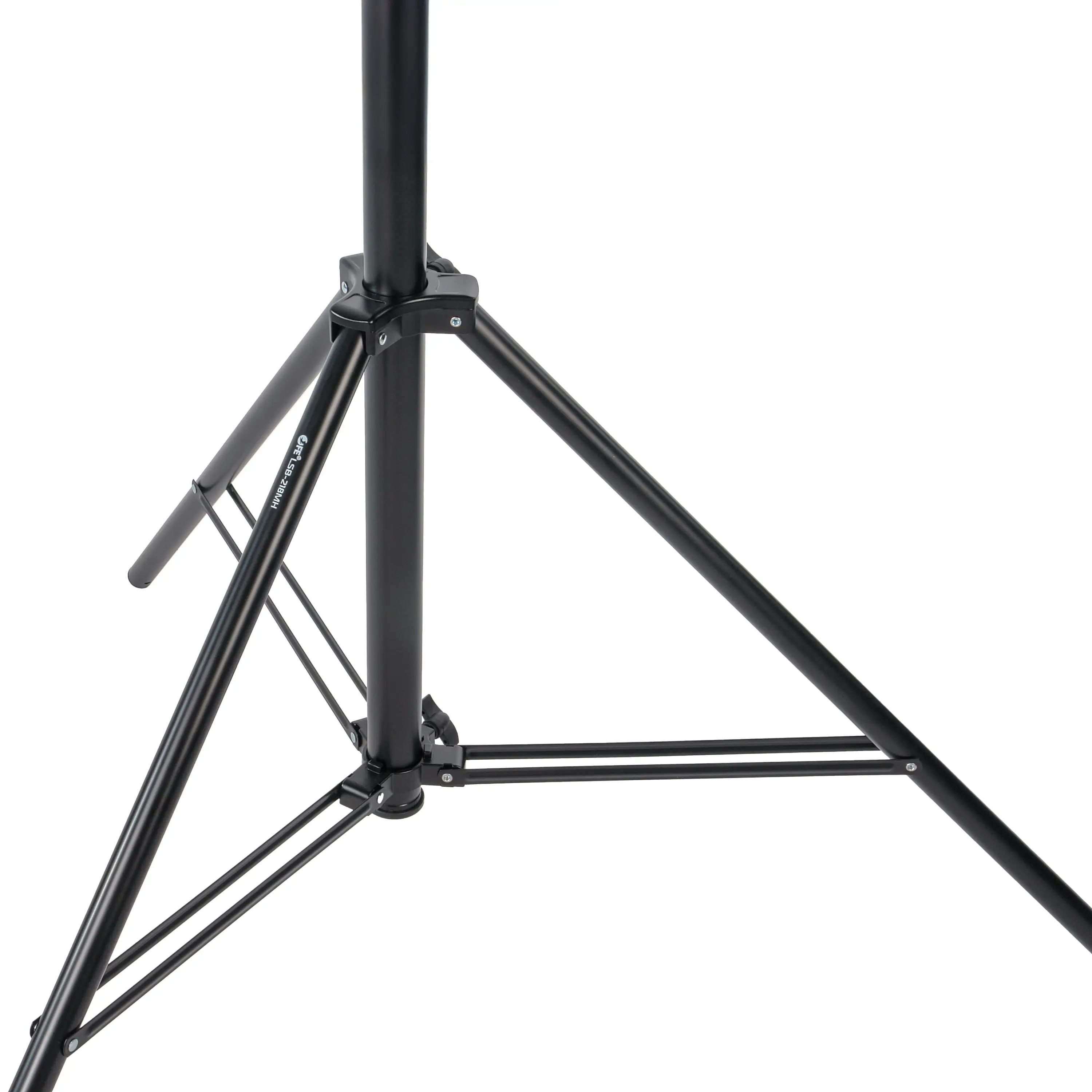 Конструкция стойки представляет собой телескопическую двухсекционную колонну, установленную на прочную треногу с размахом ног 120 см. Высоту стойки можно плавно регулировать от 110 до 218 см. Пружинная амортизация секций гарантирует дополнительную безопасность: при случайном ослаблении фиксатора механизм предотвращает резкое падение оборудования.