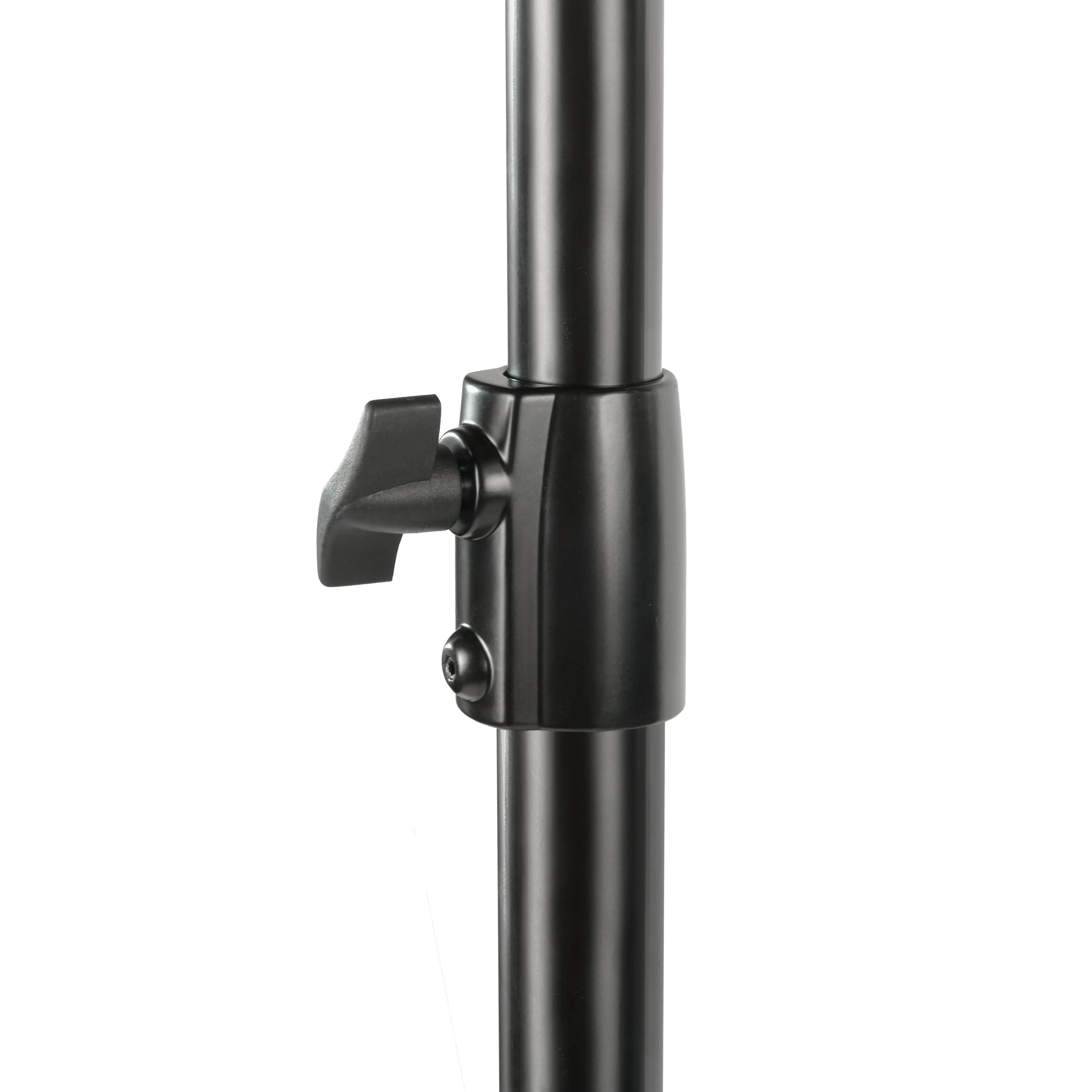 Все основные узлы стойки и перекладины изготовлены из высокопрочной стали, что гарантирует максимальную жесткость конструкции и отсутствие люфтов даже при полном вылете стрелы. Секции стойки диаметром 40/35 мм и перекладины 35/30 мм гарантируют оптимальное соотношение прочности и минимального веса. Металлическое исполнение критических элементов — зажимов, соединительной муфты и кронштейна противовеса — обеспечивает долговечность эксплуатации в интенсивном студийном режиме.