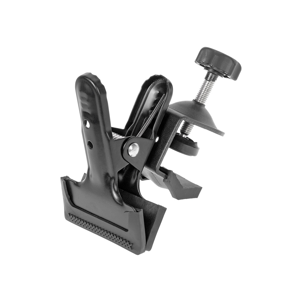Зажим представляет из себя струбцину жёстко соединённую с подпружиненным клипсовым зажимом. Усилия зажима (около 5 кг) клипсы достаточно, чтобы надёжно зафиксировать фон, отражатель, фильтр и др. вспомогательное оборудование «на весу».