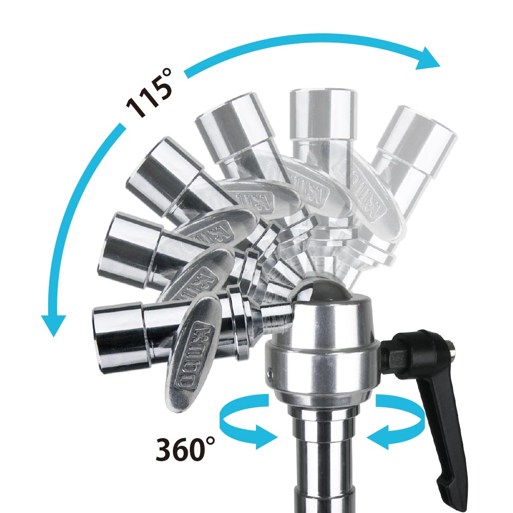 Держатель KUPO KCP-412 SUPER GRIP FINGER-DOUBLE BABY RECEIVER с двумя штифтами Junior 1-1/8" (28мм) со встроенными приёмными крепёжными отверстиями Baby 5/8" (16мм). Преобразует фиксированный штифт Baby 5/8" или приемное отверстие Junior 1-1/8" в штифт Junior 1-1/8" или приемное отверстие Baby 5/8". Шаровое крепление позволяет наклонять штифт на угол 115˚. Зажимная регулируемая рукоятка обеспечивает блокировку шарового основания. Рукоятки фиксации приемных отверстий можно хранить на шарнирном основании держателя.