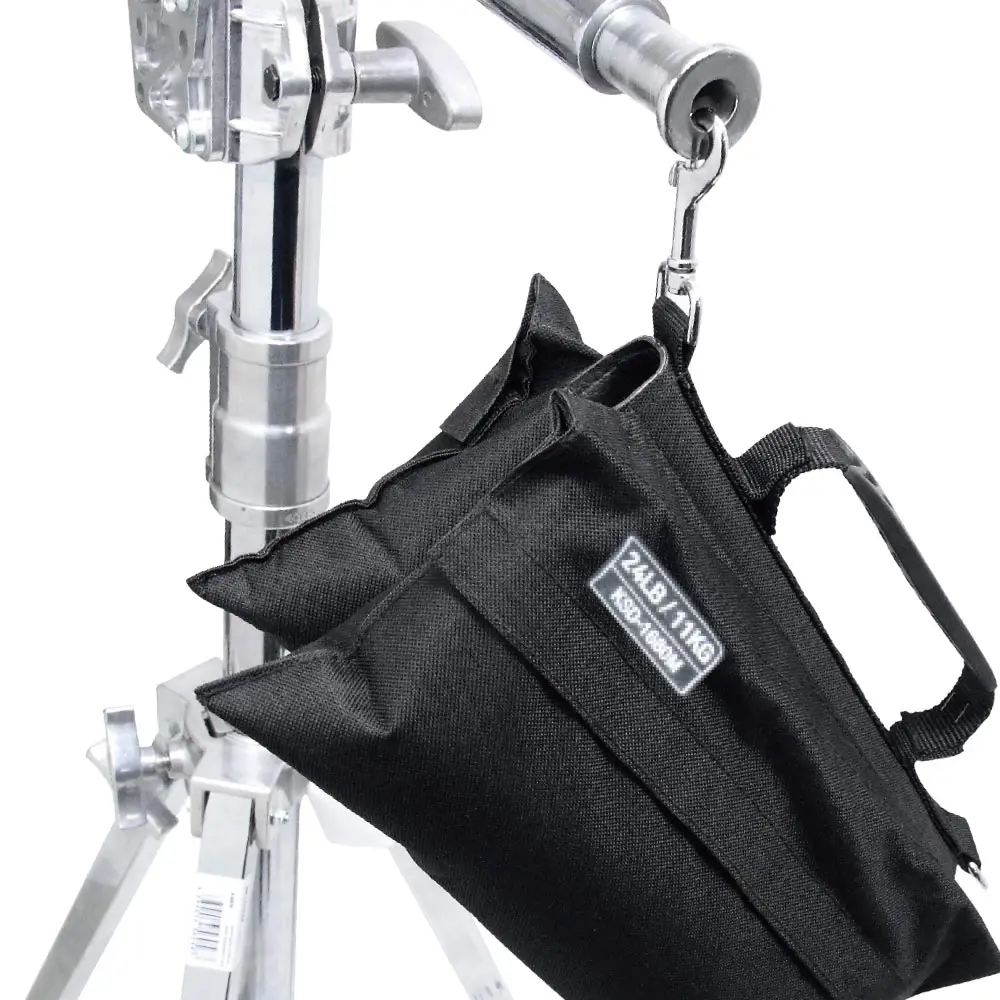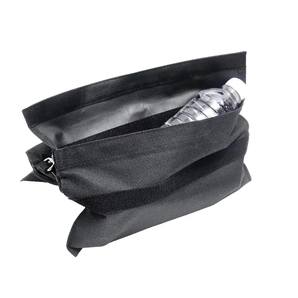Мешок для песка KUPO KSD-1680S SMALL-SIZED SAND BAG изготовлен из прочного нейлона Cordura 1000D и выполнен в форме седельной сумки. Мешок для песка Kupo идеально подходит для навешивания на ножки стоек и стрелы. Дополнительные заклепки, двойная прострочка и внутренняя окантовка обеспечивают исключительную прочность. Двойные ручки сверху и снизу делают переноску особенно удобной. Высококачественная застежка-липучка надежно удерживает содержимое на месте, а плотные внутренние вкладыши из пластика предотвращают высыпание песка и защищают от влаги. Мешок оснащен резиновой ручкой для удобного перемещения, а также люверсом и карабином для крепления на крюки стрелы. Эти мешки — незаменимый элемент безопасности на съемочной площадке: предотвращают опрокидывание стоек, обеспечивают стабильную поддержку камеры и служат противовесом для стрел, помогая работать спокойно и без лишних рисков.