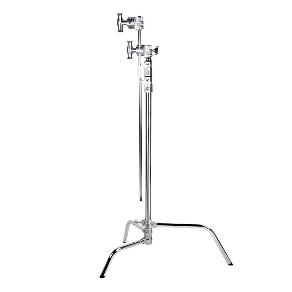 В комплект входит стойка C-Stand, 2,5" головка и 100см штанга. Штанга представляет собой 100 см отрезок стальной трубы диаметром 5/8 дюйма (16 мм) с шестигранным штифтом на одном ее конце и поворотной муфтой на другом. Головка 2,5" состоит из пары вращающихся алюминиевых дисков, прикрепленных к гнезду 5/8" (16 мм). Диски оснащены четырьмя V-образными тисками разного размера для крепления любых аксессуаров с 5/8", 1/2", 3/8" или 1/4" крепежными штифтами или трубками. V-образные зажимы имеют зубцы, которые надежно захватывают все, что установлено между пластинами. Головка оснащена эргономичной Т-образной рукояткой увеличенного размера и подшипниками, обеспечивающими максимальный крутящий момент.